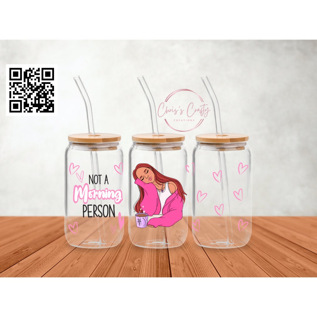 The UVDTF Wrap is the perfect solution for those who are not morning people, featuring a sarcastic and funny design that will make you smile. With its permanent waterproof adhesive, this wrap is ready to be applied to any cup, making it the ideal choice for everyday use. Say goodbye to bland and boring cups, and add some personality to your drinkware with UVDTF Wrap.