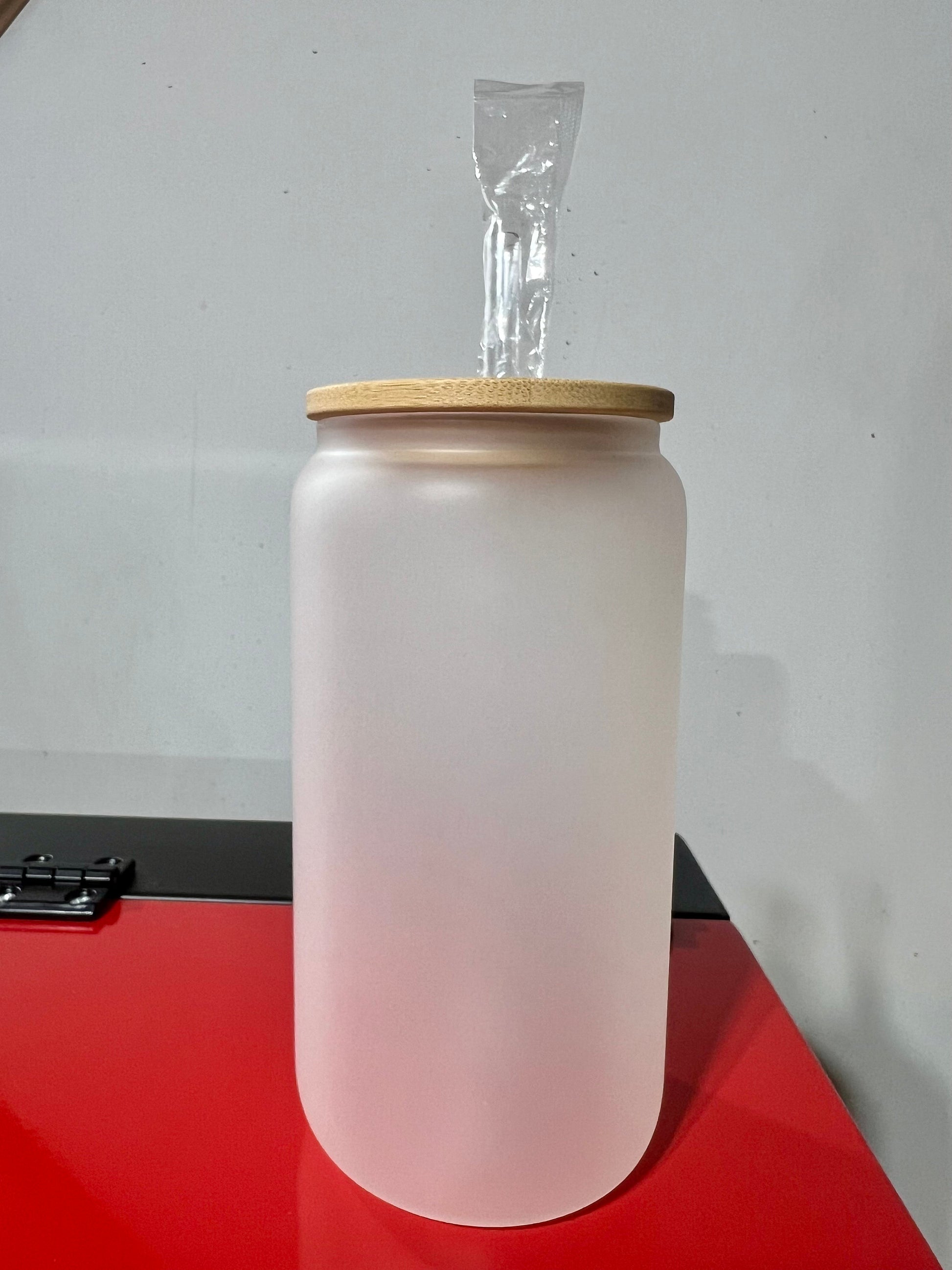 16oz Can Glass Frosted with Lid and Straw, Add on UVDTF Transfer Wrap, Gift for her, Customized Gifts, Graduation Gift