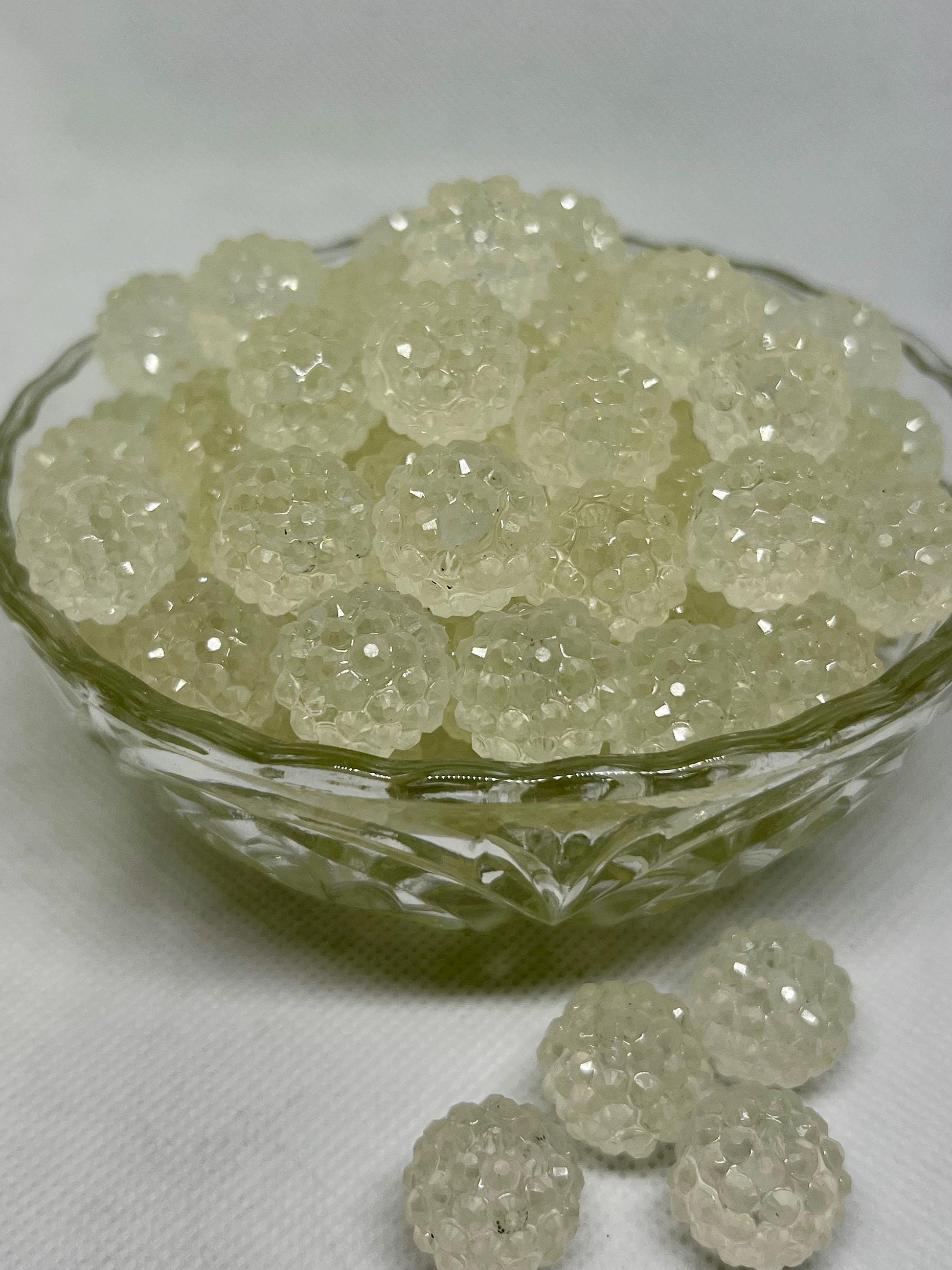 Add a little sparkle to your designs with these 16 mm Glow-in-the-Dark White Rhinestone Acrylic Beads! Perfect for crafts, jewelry making, and other creative projects, these beads bring a touch of magic to any design. Each bead features a lightweight acrylic base, encrusted with faceted rhinestones that catch the light beautifully. When the lights go off, these beads emit a soft, ethereal glow, adding a unique charm to your creations.