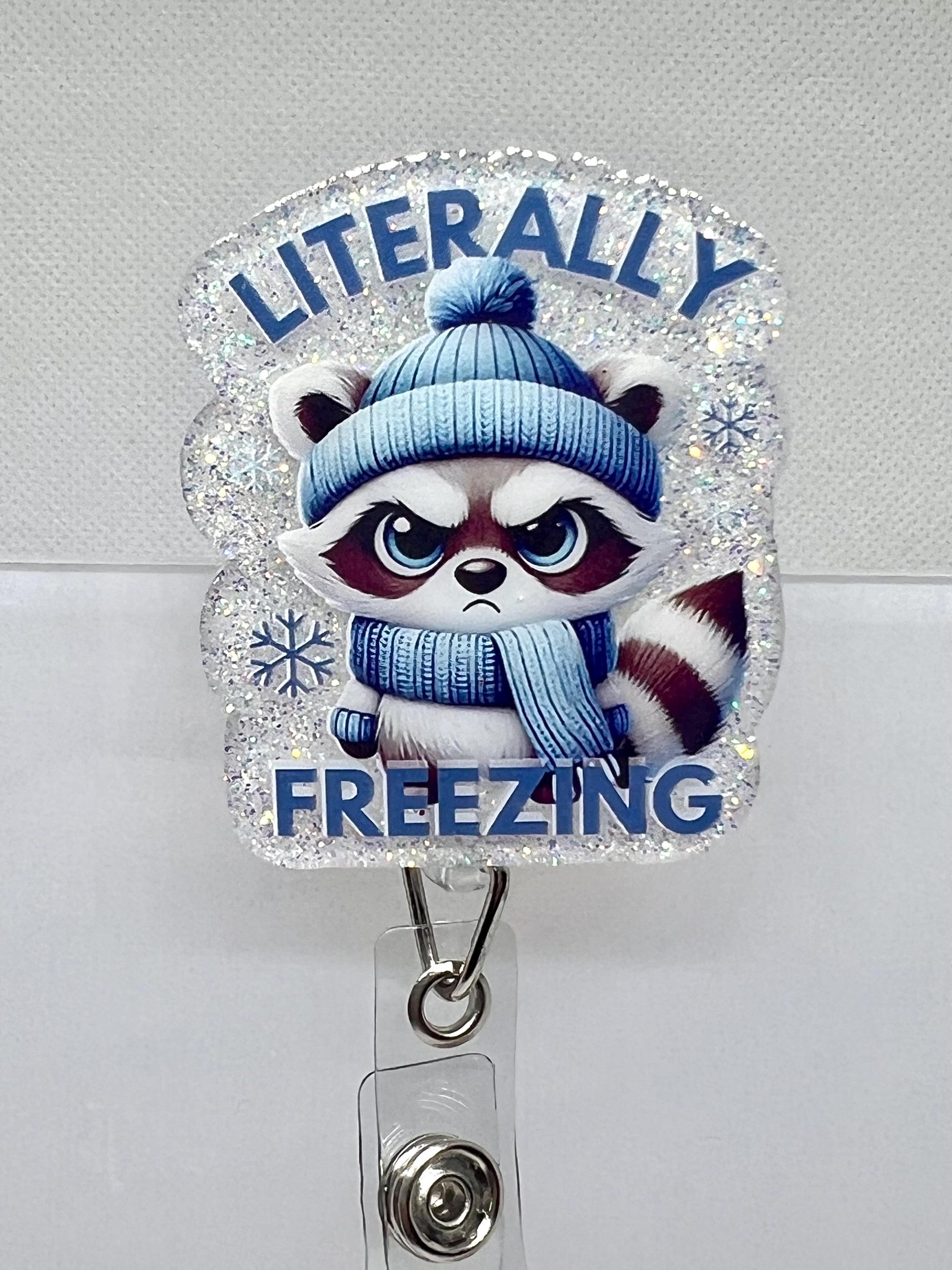 Acrylic Blank Decal Set Racoon Literally Freezing, DIY Badge Reels, Winter Badge, Blank and UVDTF sticker, Unfinished Badge Reel