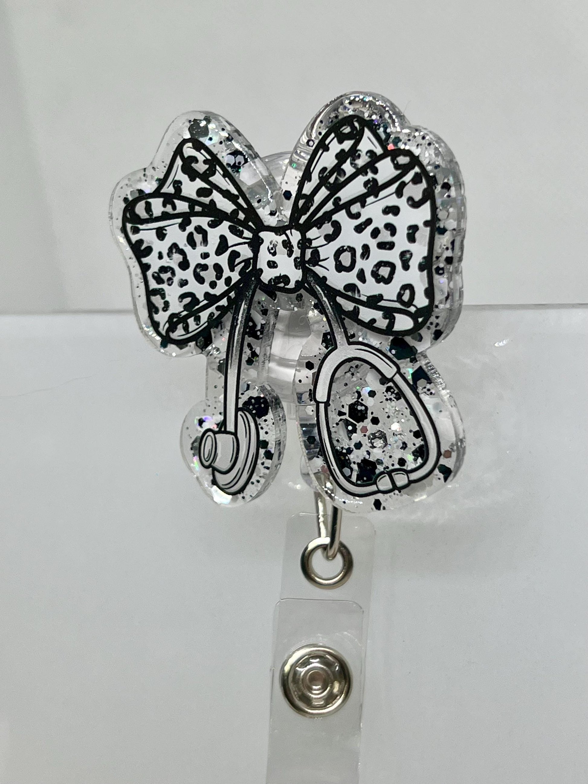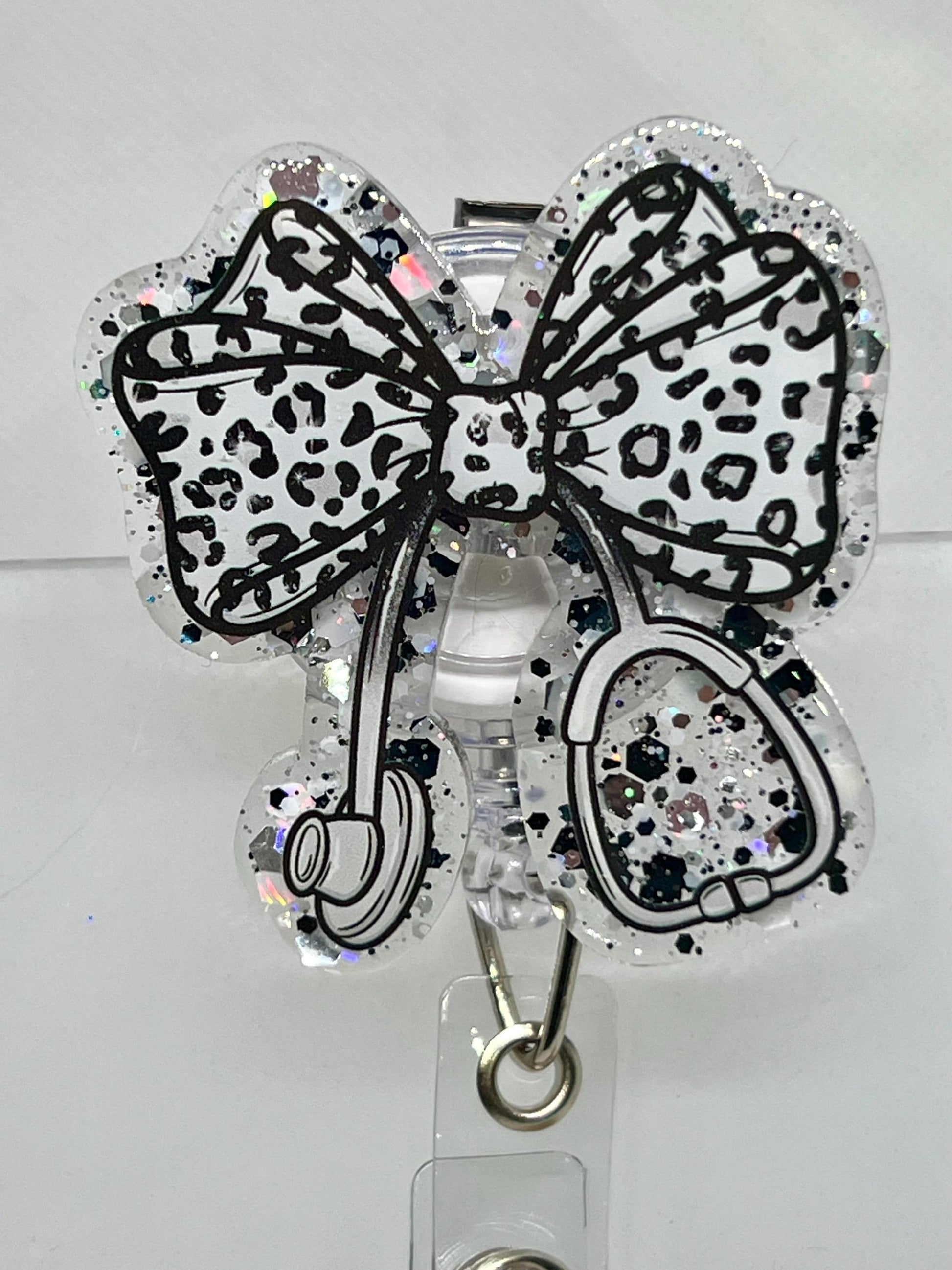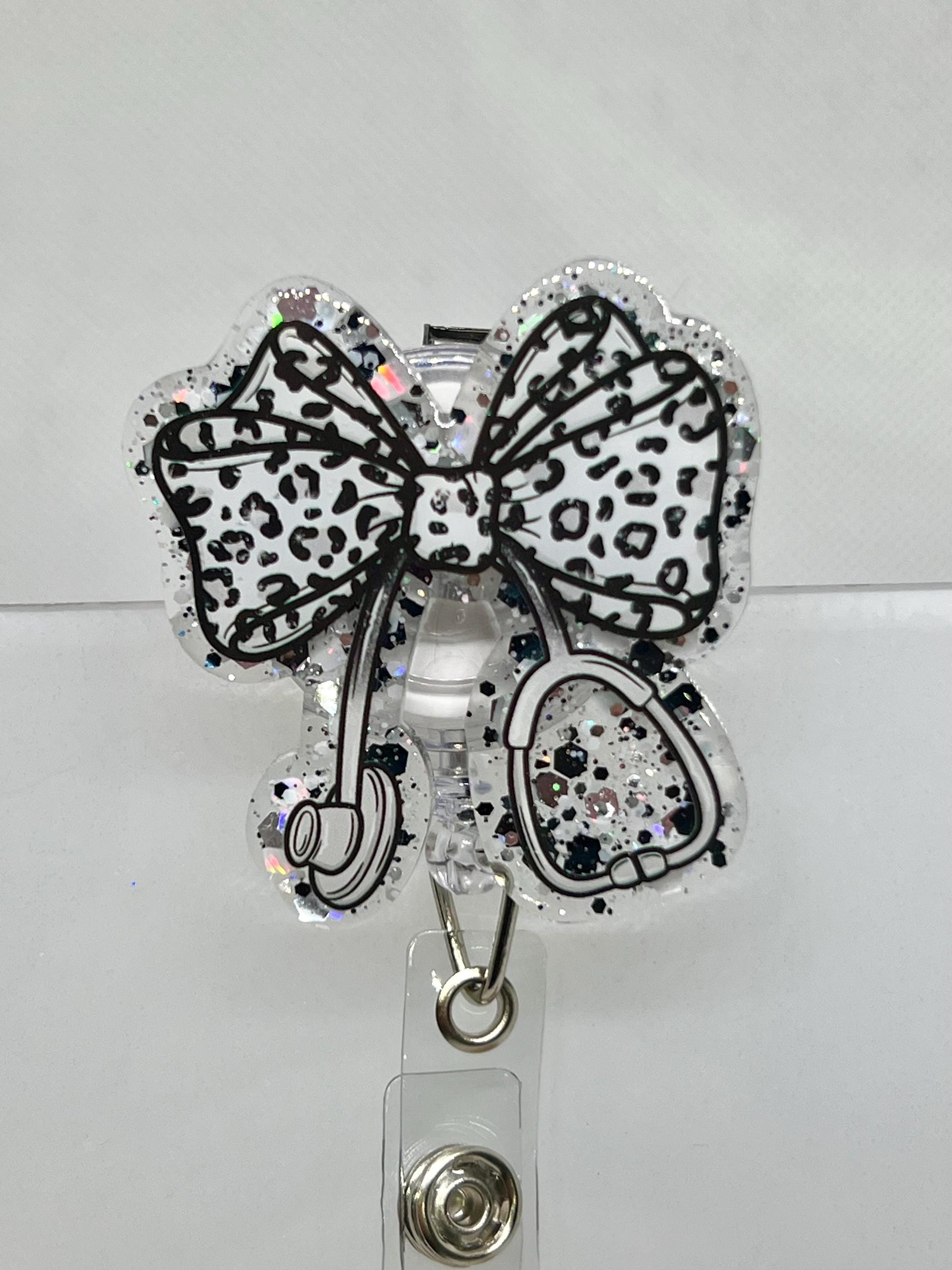 Add some personality to your daily uniform with this stylish and functional badge reel featuring a chic leopard-print bow design. Perfect for nurses, teachers, medical staff, or office professionals, this badge reel combines charm and utility.