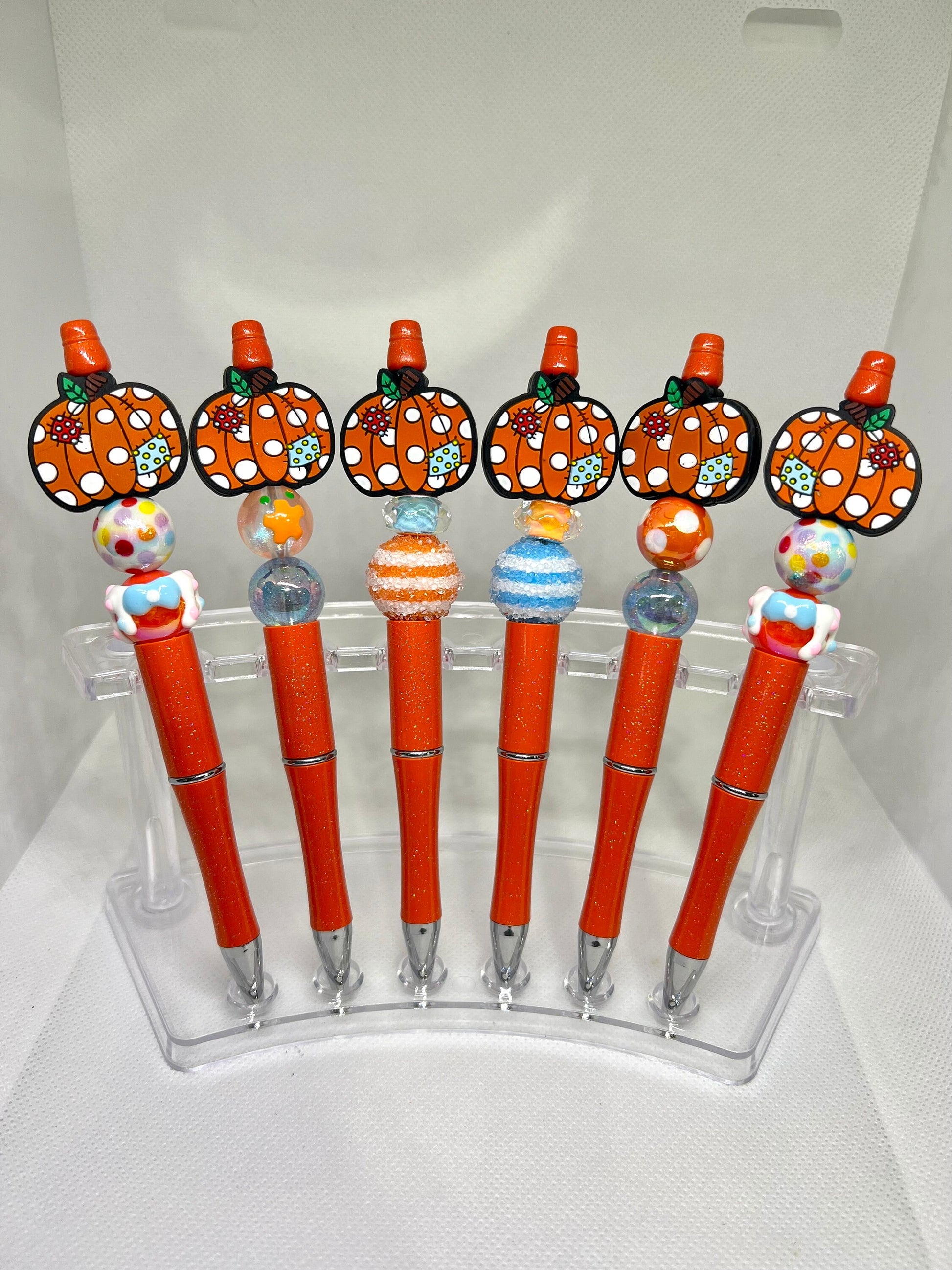 Beaded Pen Fall Pumpkin Polka Dots, Fun Pens Acrylic Beads, Custom Pen, Retractable Ink Pen, Gifts for her, Teacher, Nurses, Medical