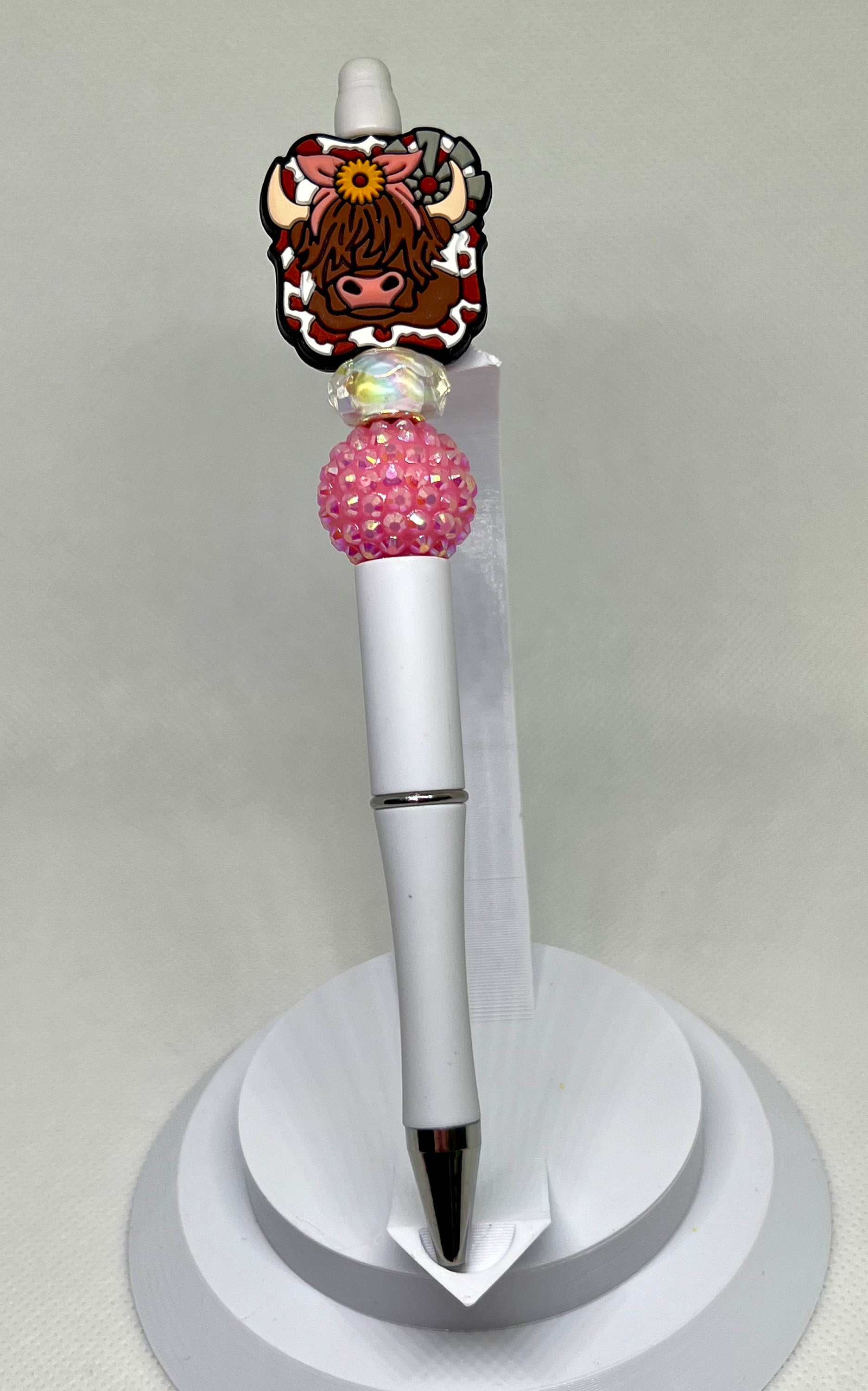 Beaded Pen Highland Cow, Fun Pens Acrylic Beads, Custom Pen, Retractable Ink Pen, Teacher Gift, Nurse Gift, Gifts for Her, Graduation Gifts