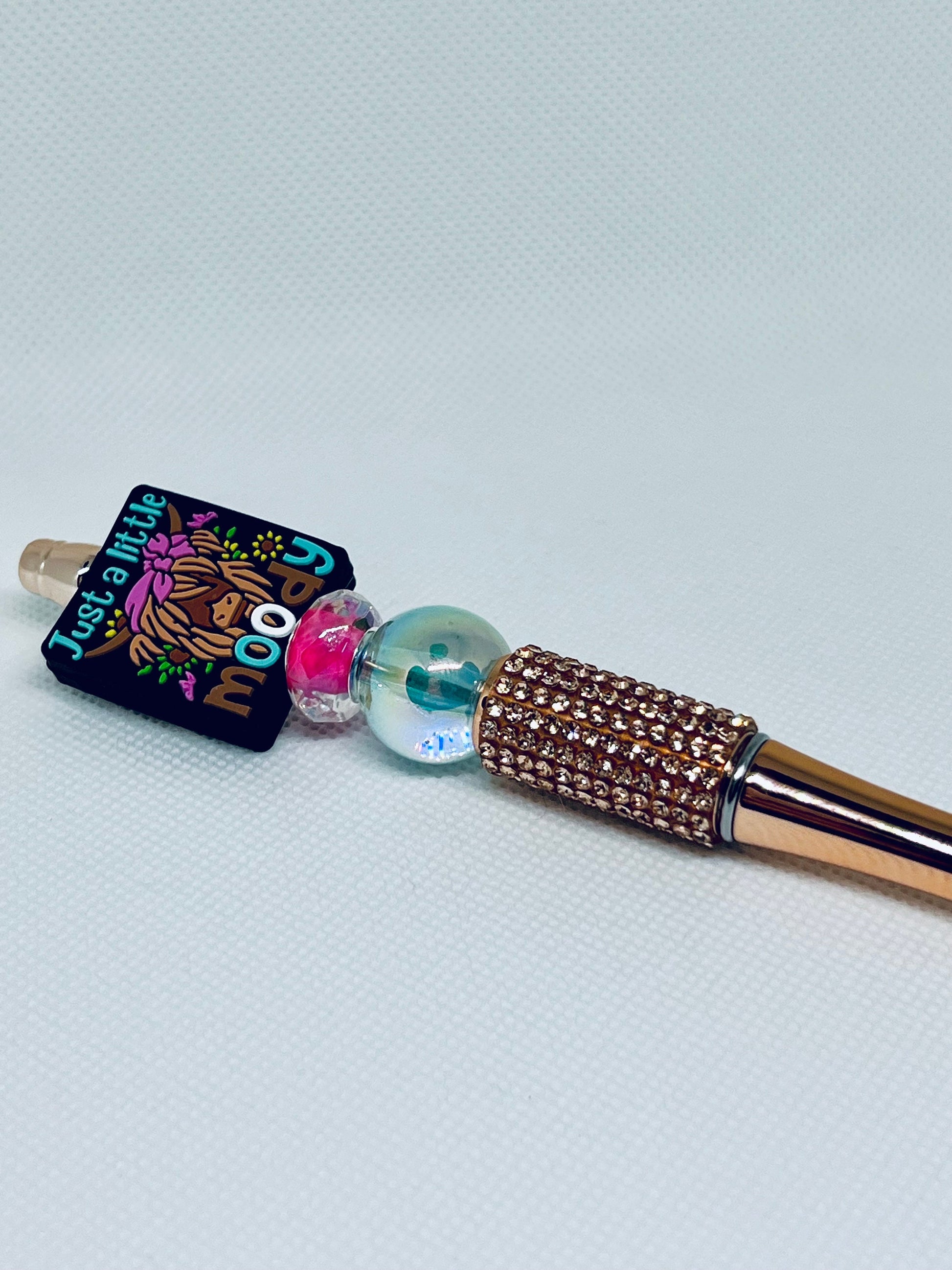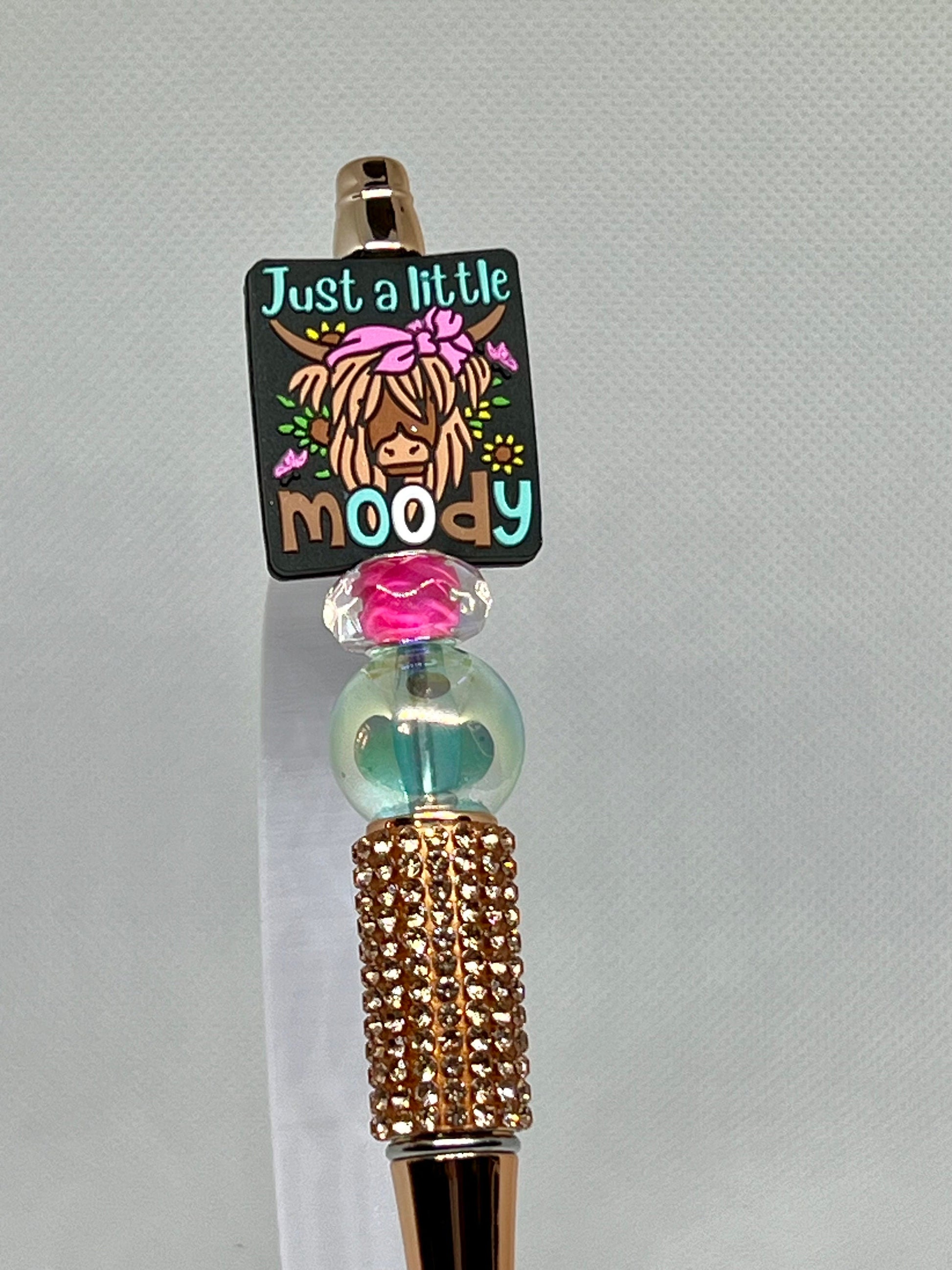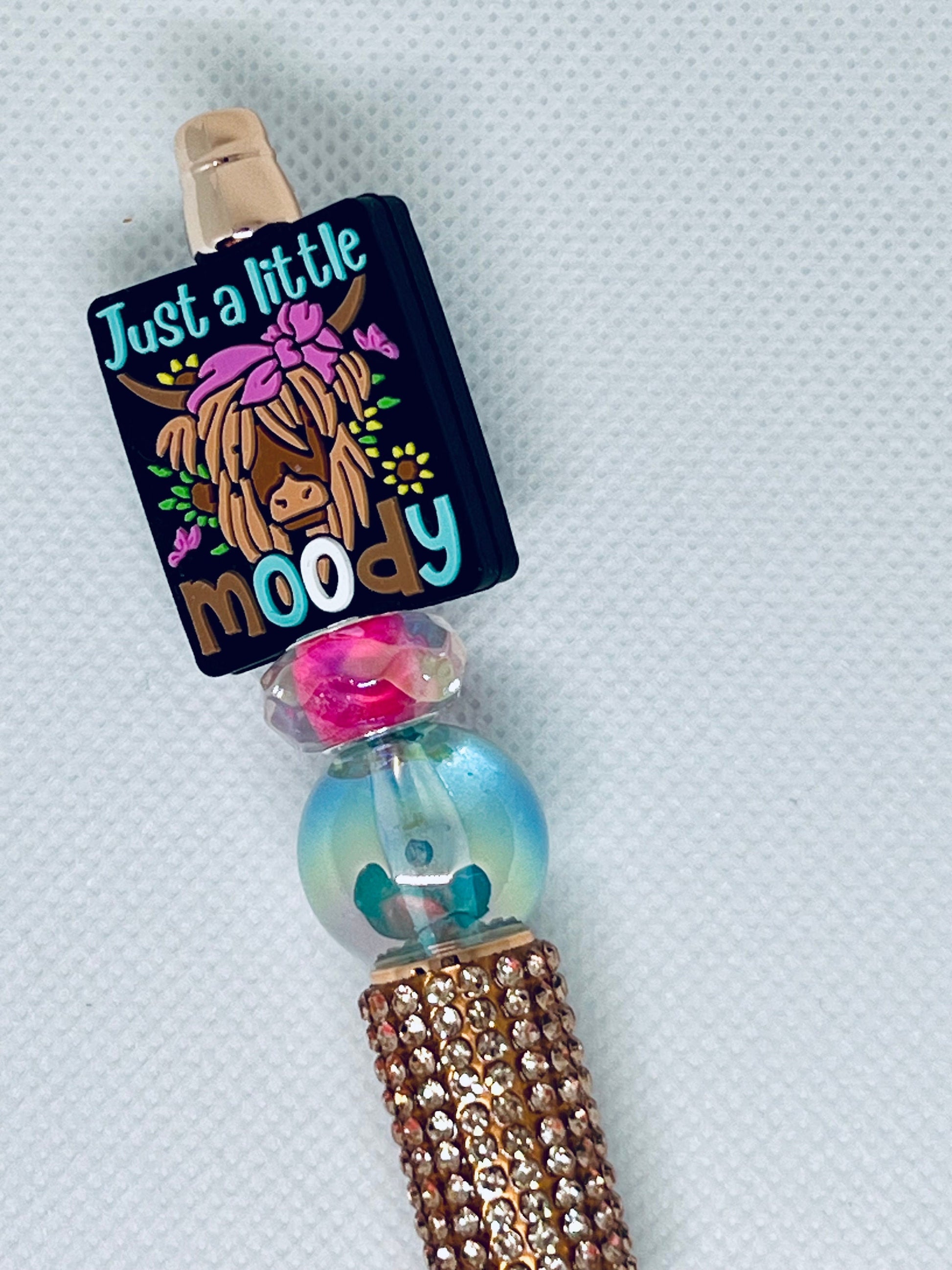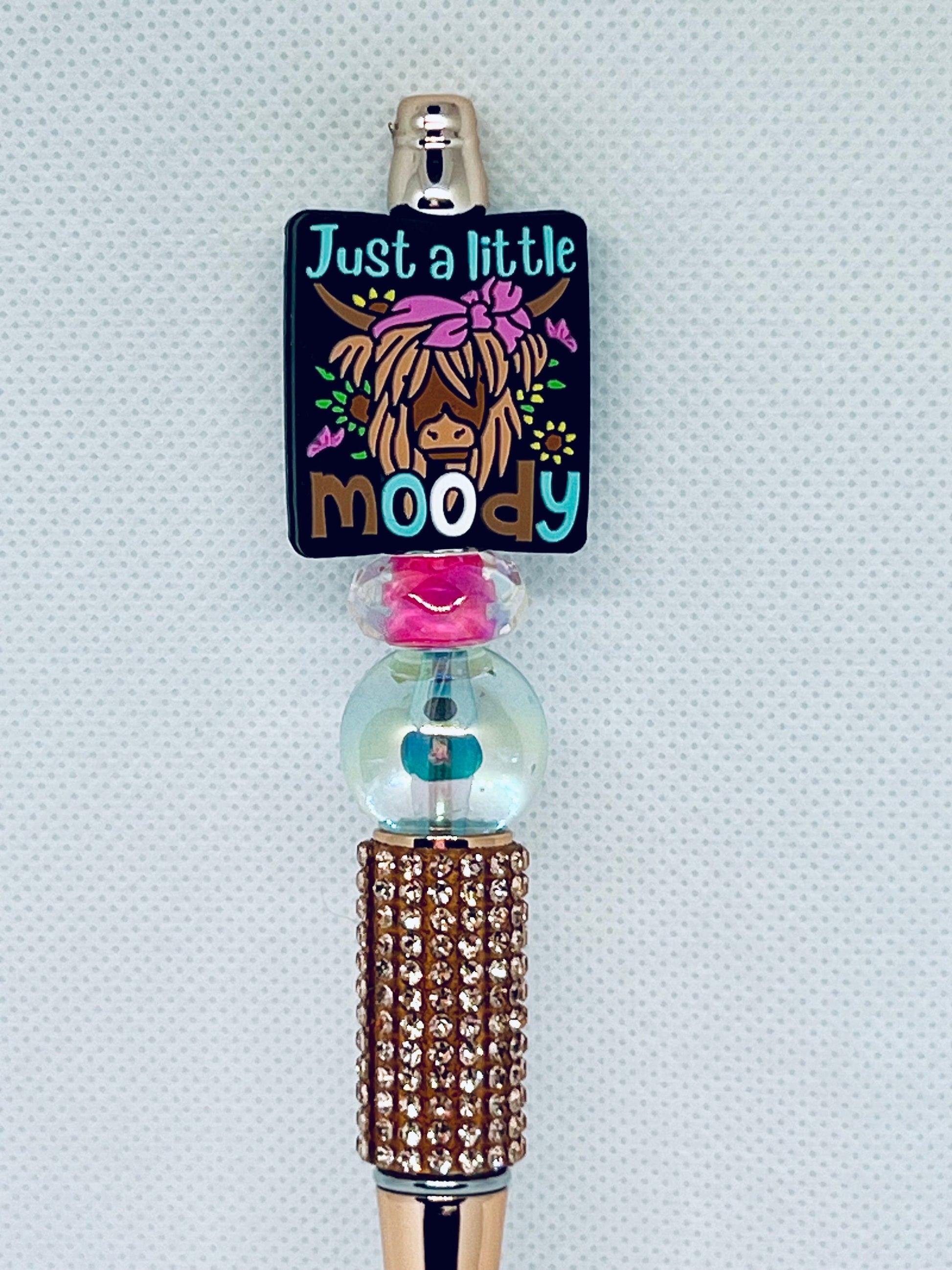 Introducing the Beaded Pen Highland Cow Just a Little Moody - the perfect addition to your stationery collection. With intricate beading and a charming cow design, this pen is both stylish and functional. Expertly crafted, it provides a smooth and comfortable writing experience. Add a touch of whimsy to your writing today.