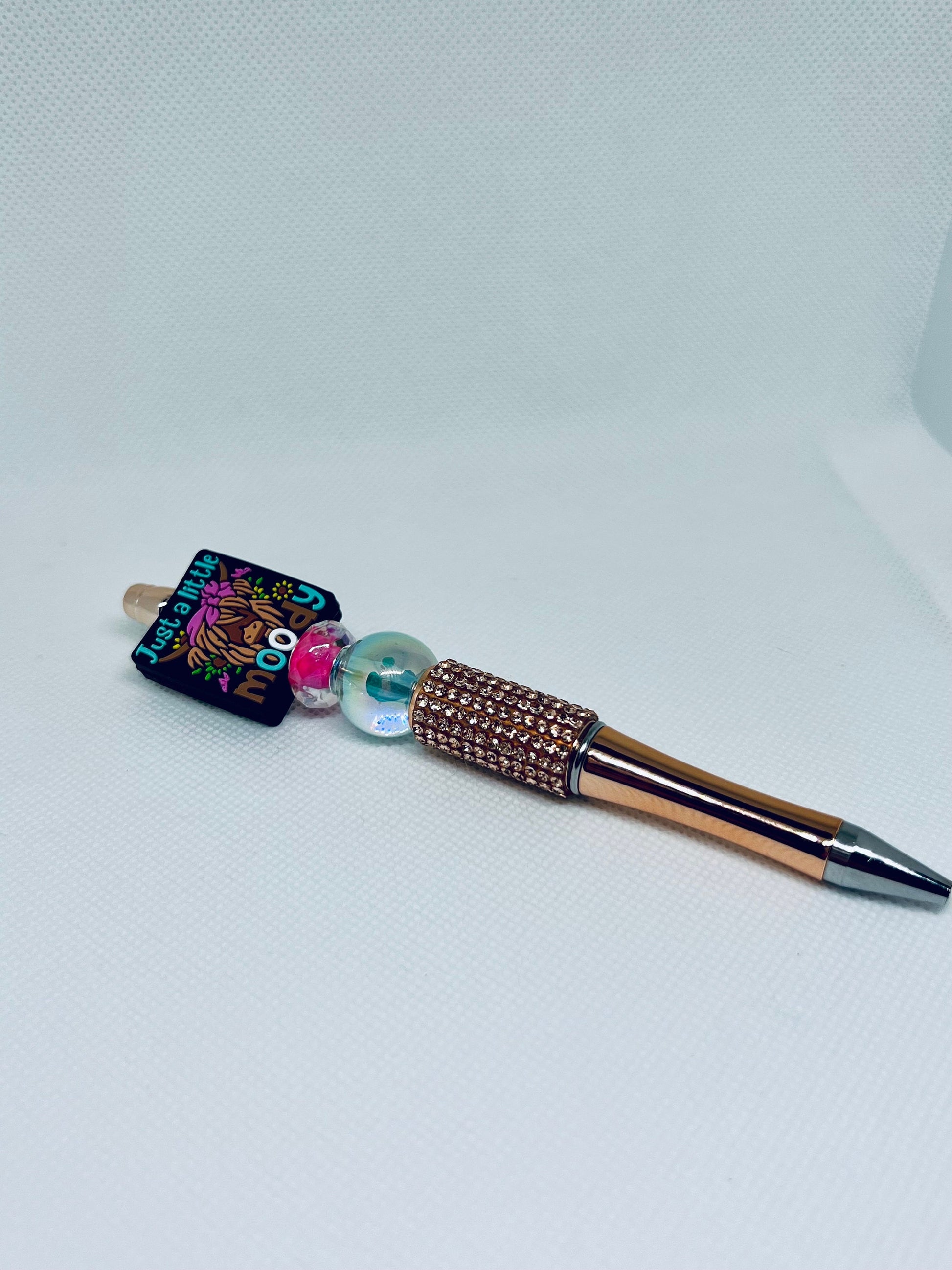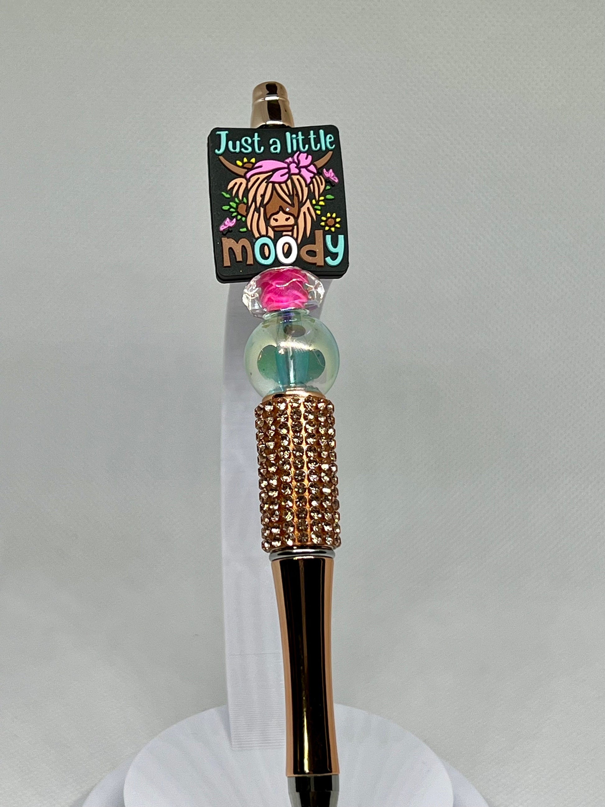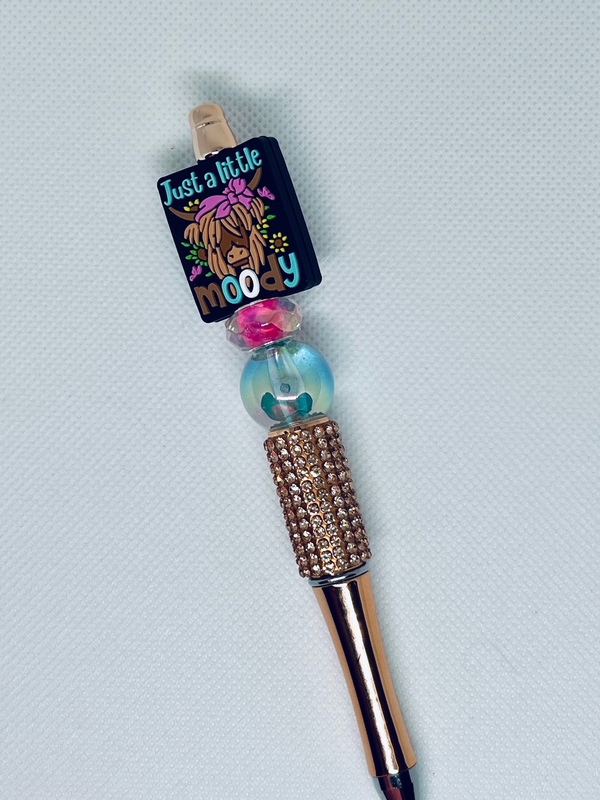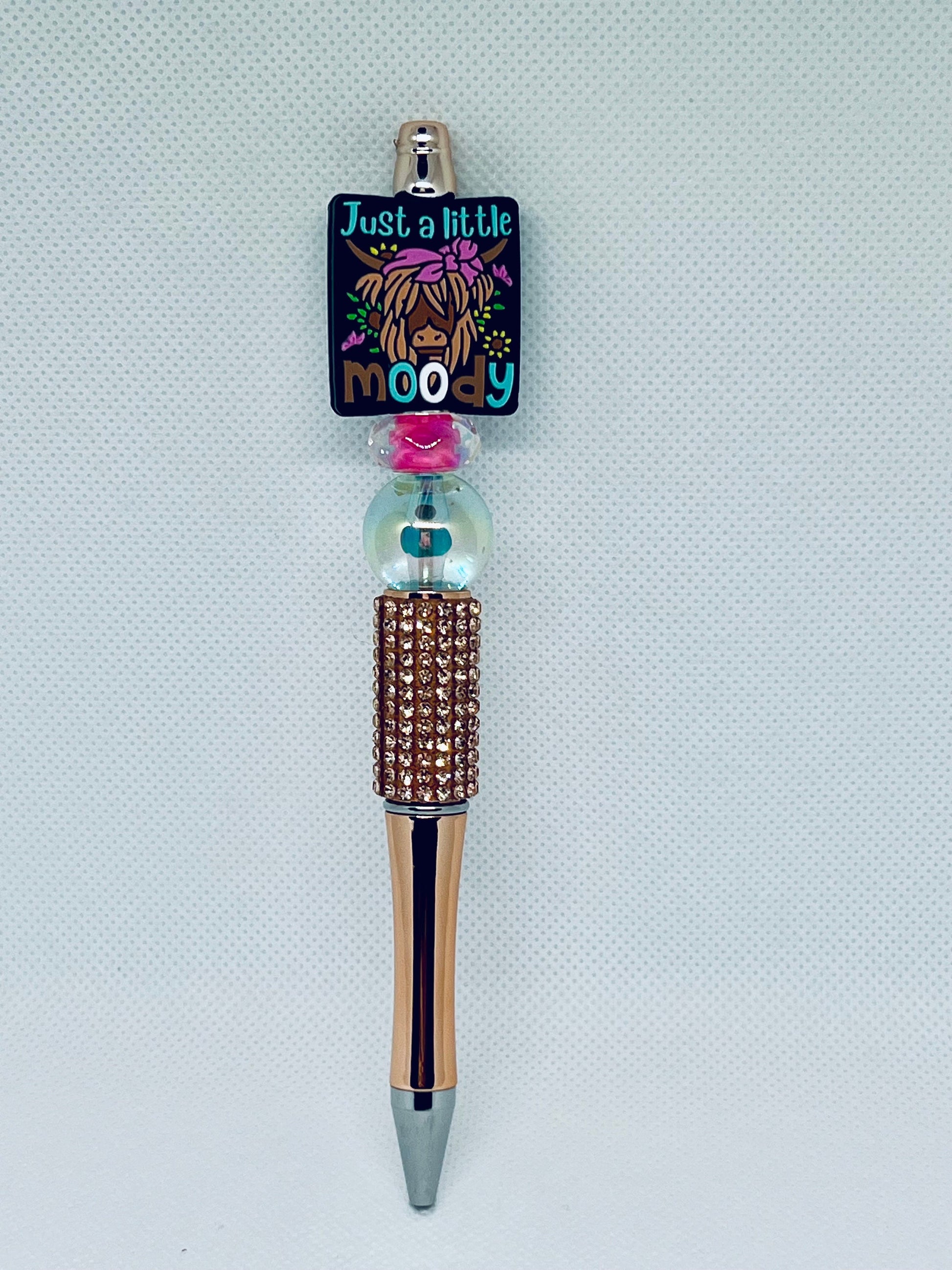 Introducing the Beaded Pen Highland Cow Just a Little Moody - the perfect addition to your stationery collection. With intricate beading and a charming cow design, this pen is both stylish and functional. Expertly crafted, it provides a smooth and comfortable writing experience. Add a touch of whimsy to your writing today.