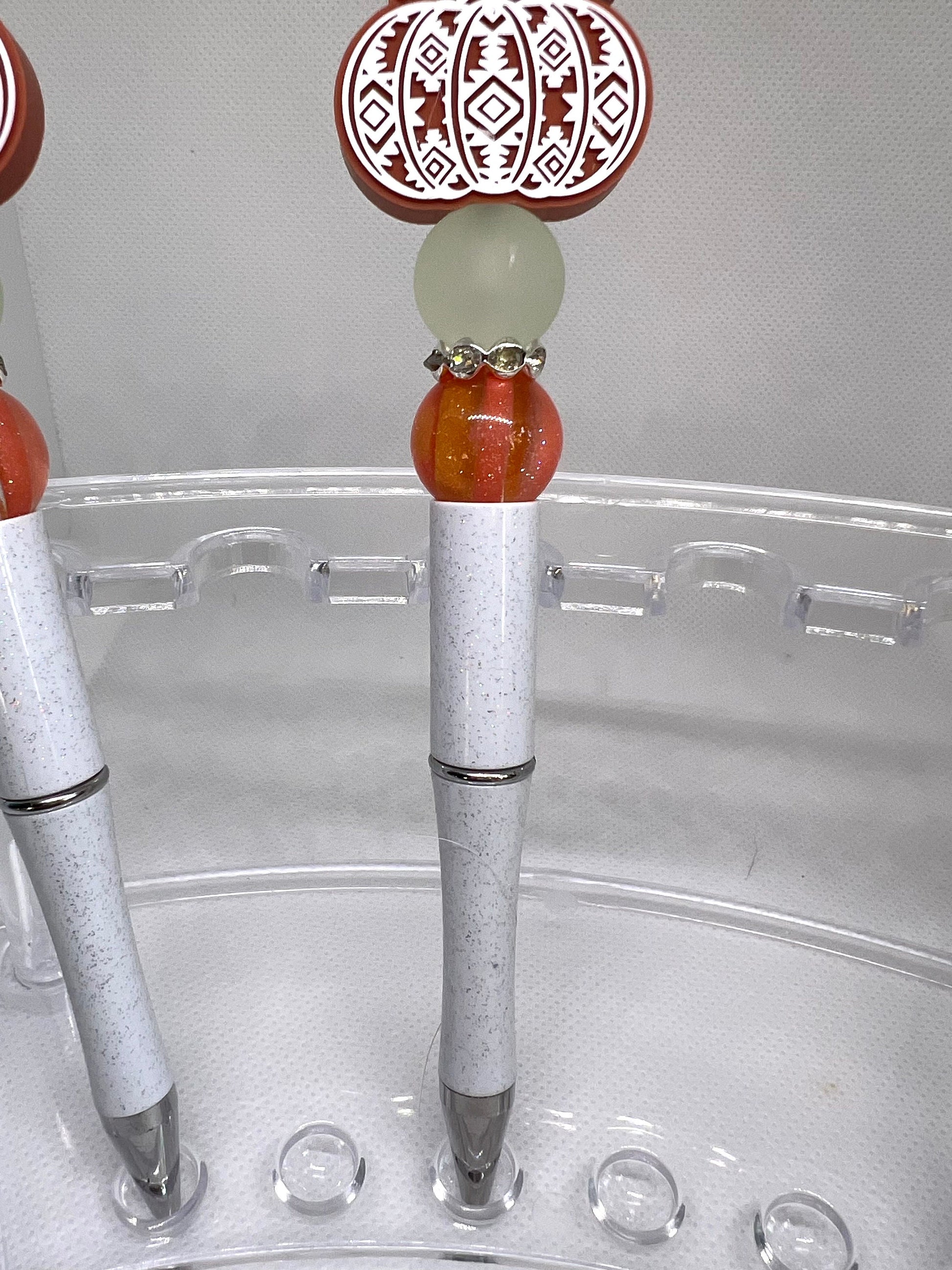 Beaded Pen Pumpkin Aztec Print, Fun Pens Acrylic Beads, Custom Pen, Retractable Ink Pen, Gifts for her, Teacher, Nurses, Medical