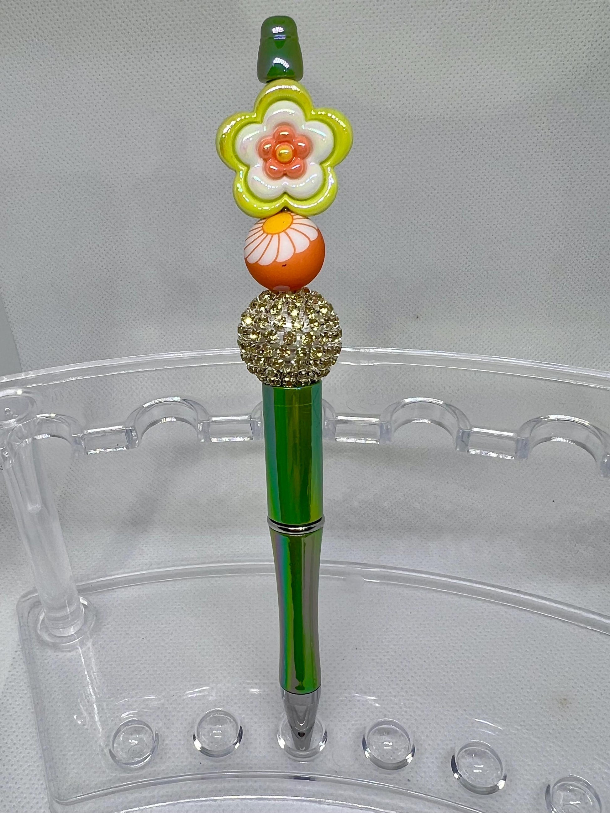 Beaded Pen Retro Flower, Refillable Ink Pen, Sarcastic Pen, Fun Pens Acrylic Beads, Custom Pen, Retractable Ink Pen, Graduation