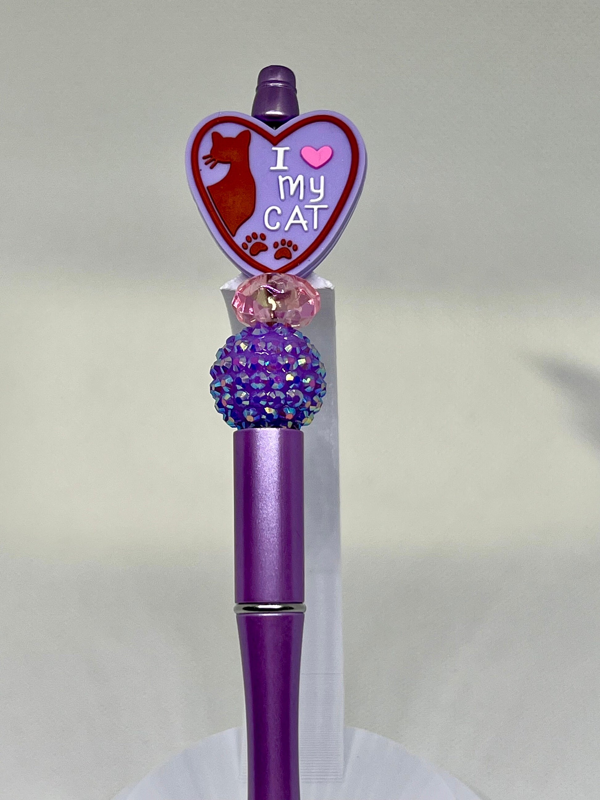 Cat Mom Purple Heart Beaded Ink Pen, I Love My Cat, Sarcastic Pen, Fun Pens Acrylic Beads, Custom Pen, Retractable Ink Pen, Gifts, Graduation
