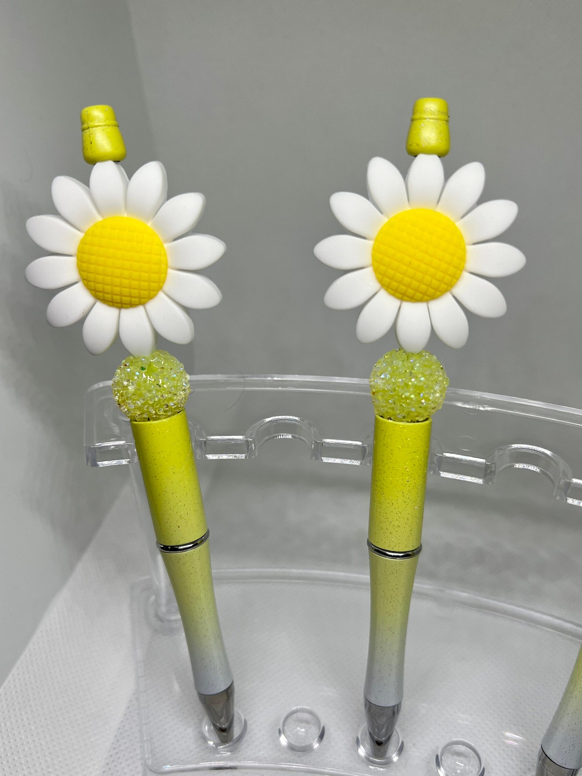 Daisy White Yellow Flower Beaded Pen, Flower Prn, Fun Pens Acrylic Beads, Custom Pen, Retractable Ink Pen, Gifts