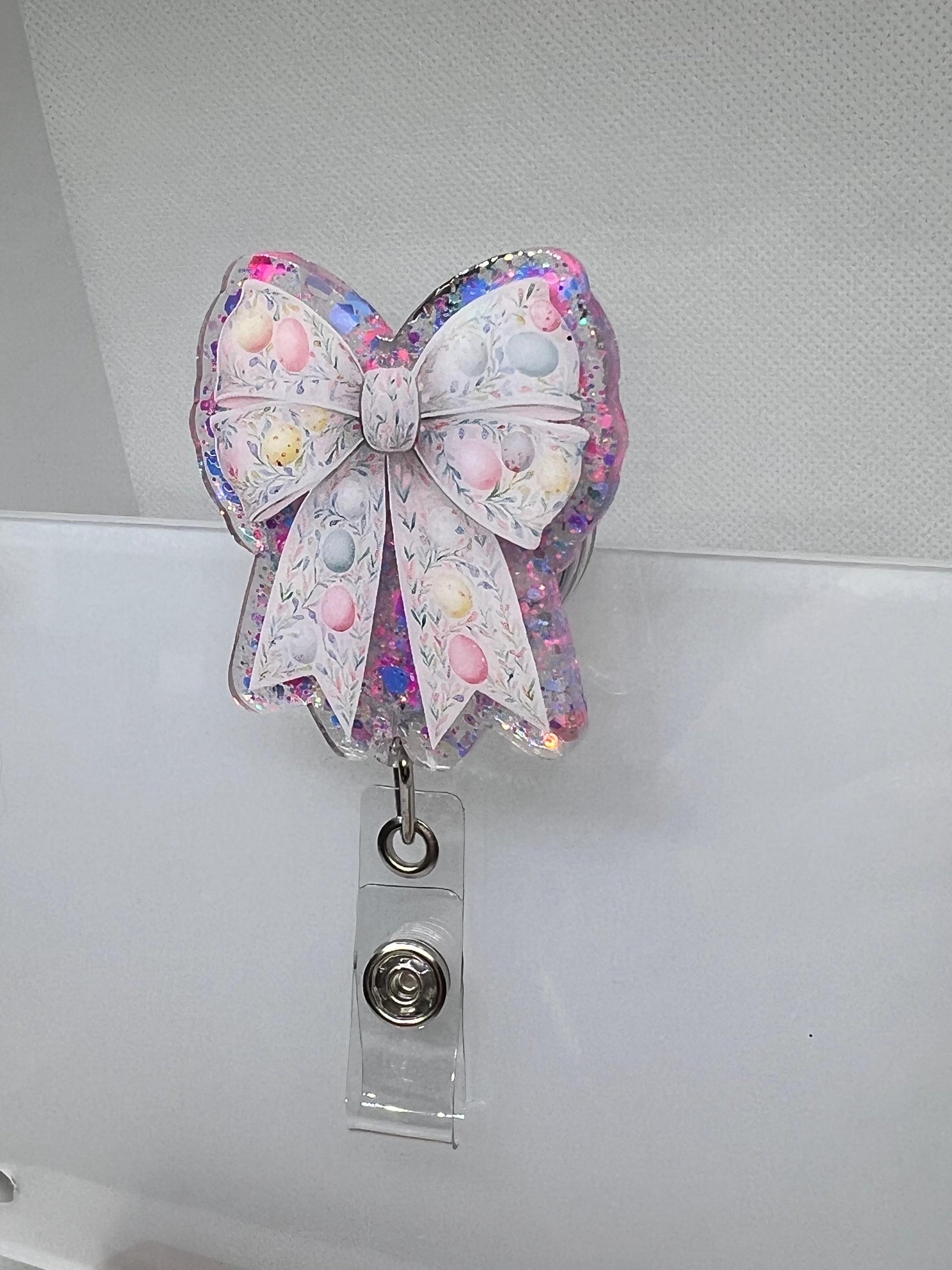 Easter Egg Bow Acrylic Blank Decal Set, DIY Badge Reels, Bow Blank and UVDTF sticker, Unfinished Badge Reel, Badge Reel Blanks
