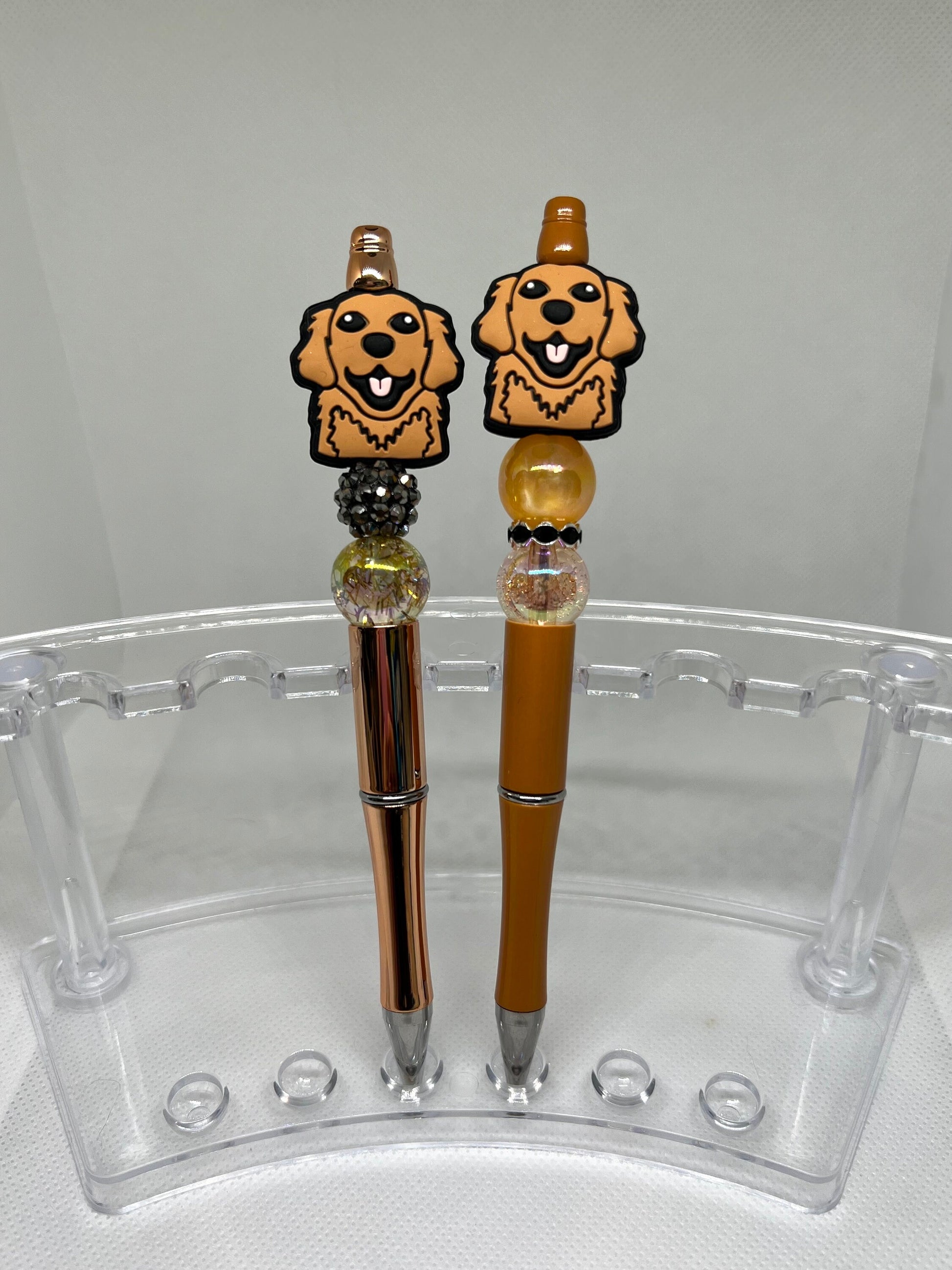 Golden Retriever Dog Beaded Pen Pink Blue Gold, Fun Pens Acrylic Beads, Beaded Pen, Retractable Ink Pen, Gifts