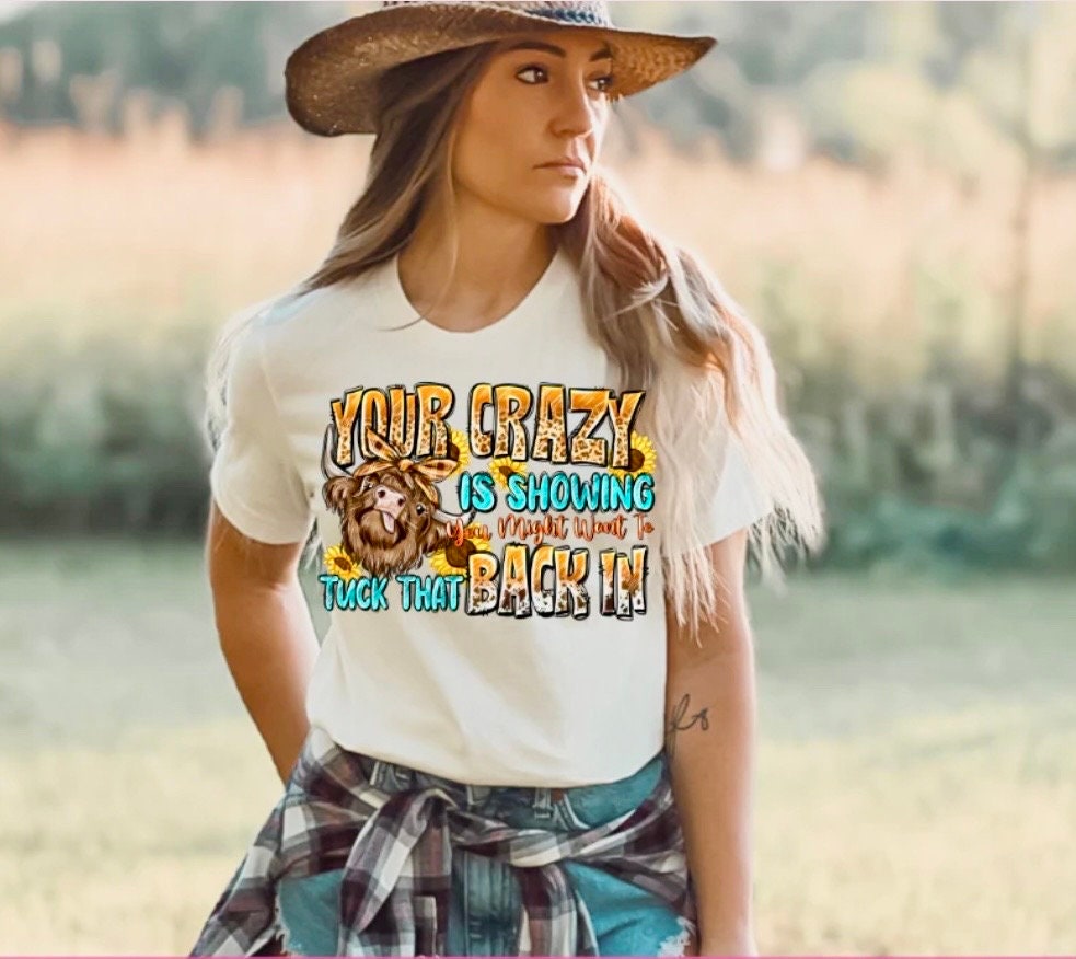 Highland Cow Screen Print Your Crazy is Showing Might Want to Tuck That Back In, Ready to Press, Full Color Matte Clear Transfer