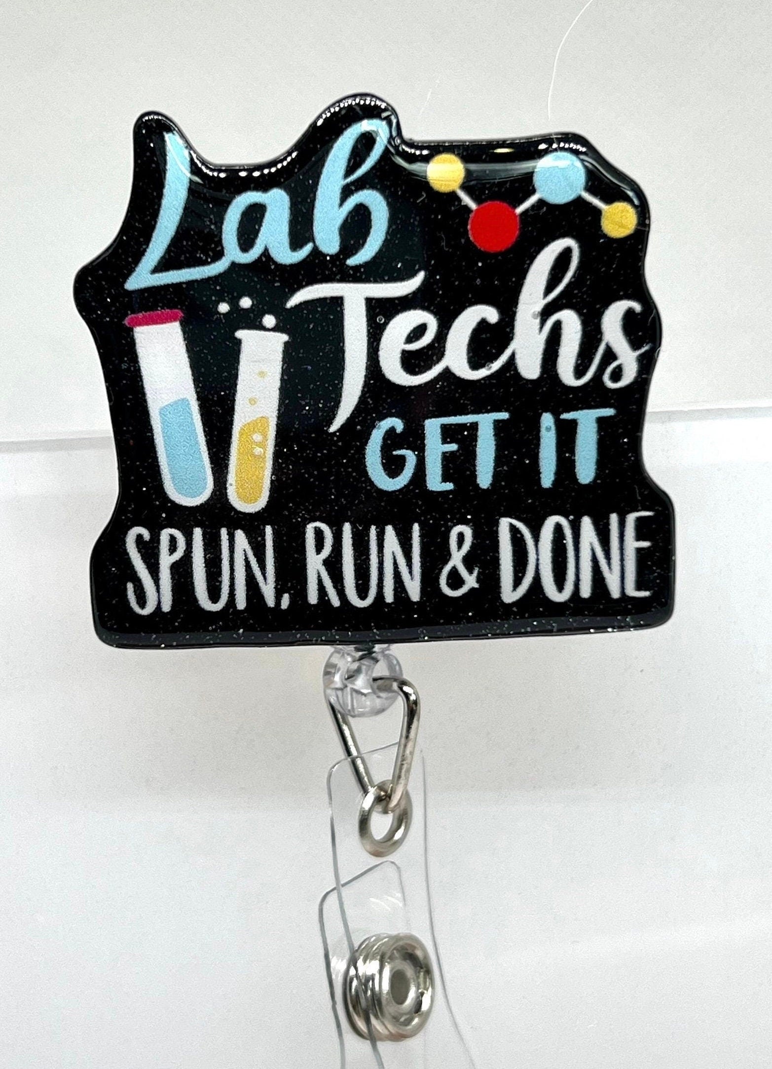 Lab Tech Badge Reel – 'Get It Spun, Run, and Done' Design for Phlebotomists, ID Badge Holder, Graduation Gift