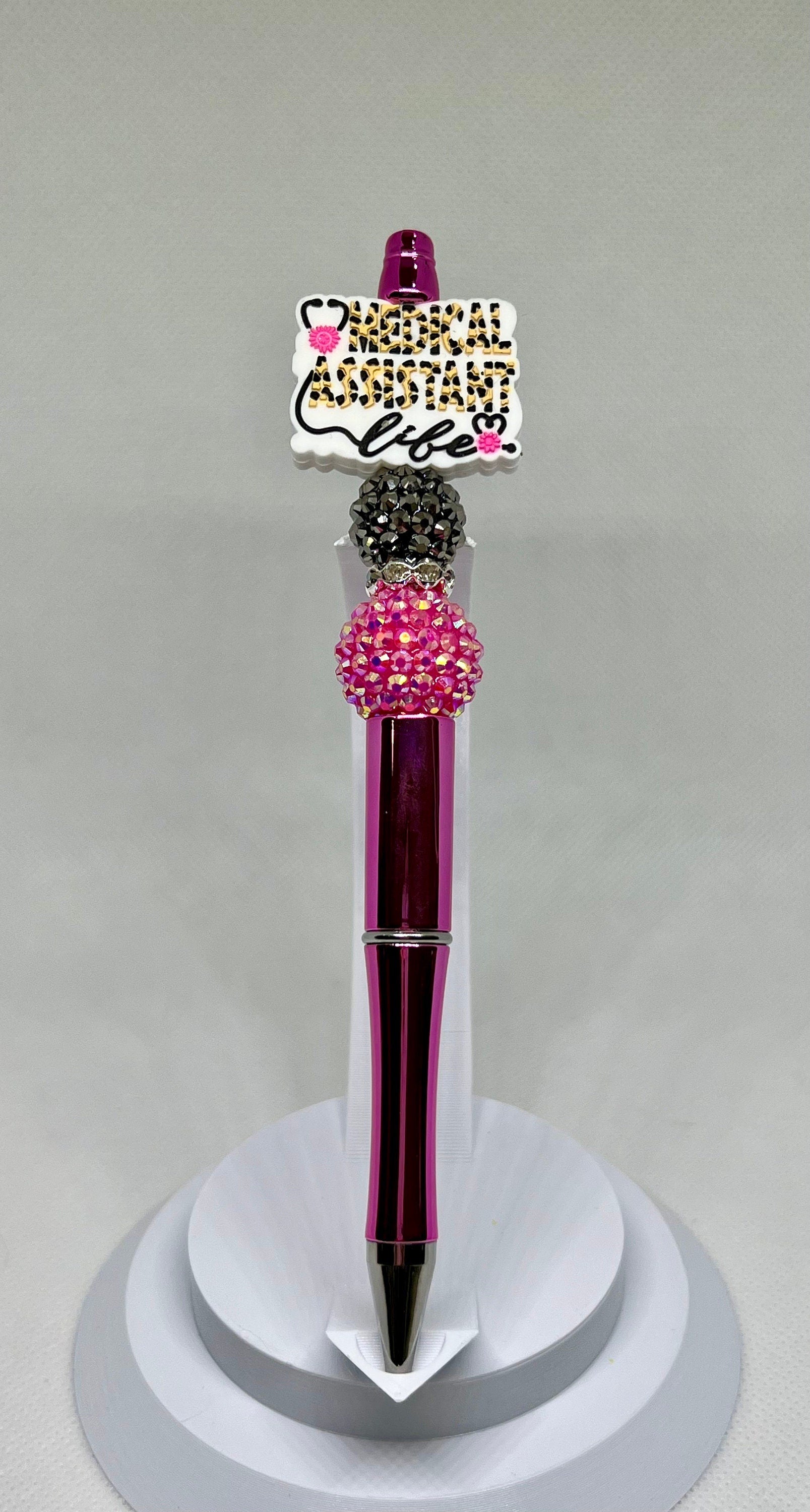 Medical Assistant Beaded Pen, Leopard Print, Sarcastic Pen, Fun Pens Acrylic Beads, Custom Pen, Retractable Ink Pen, Gifts, Graduation