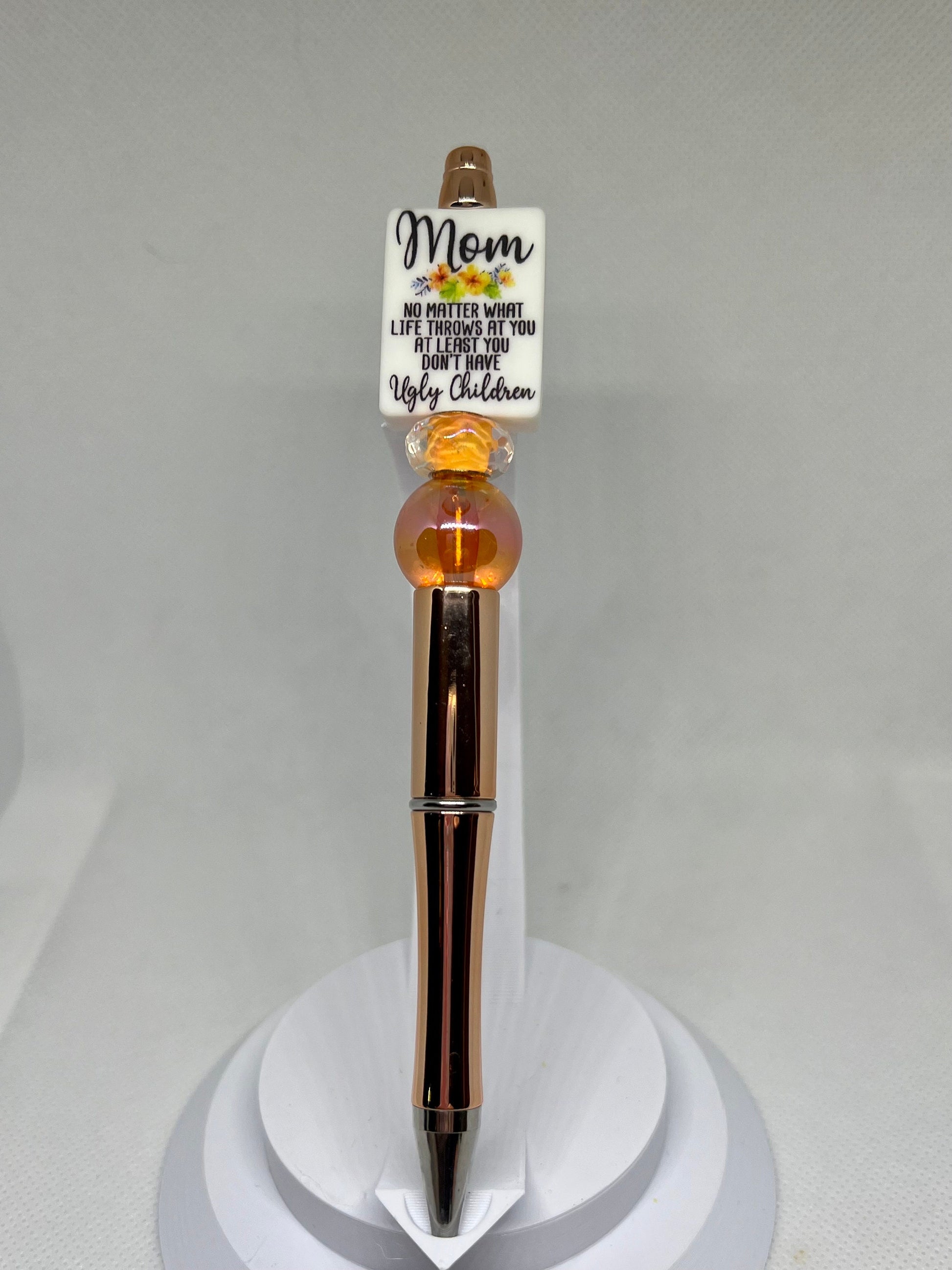 Mom No Matter What Life Throws at You at Least You Don’t Have Ugly Children, Retractable Ink Beaded Pen, Mom Gifts, Funny Pen