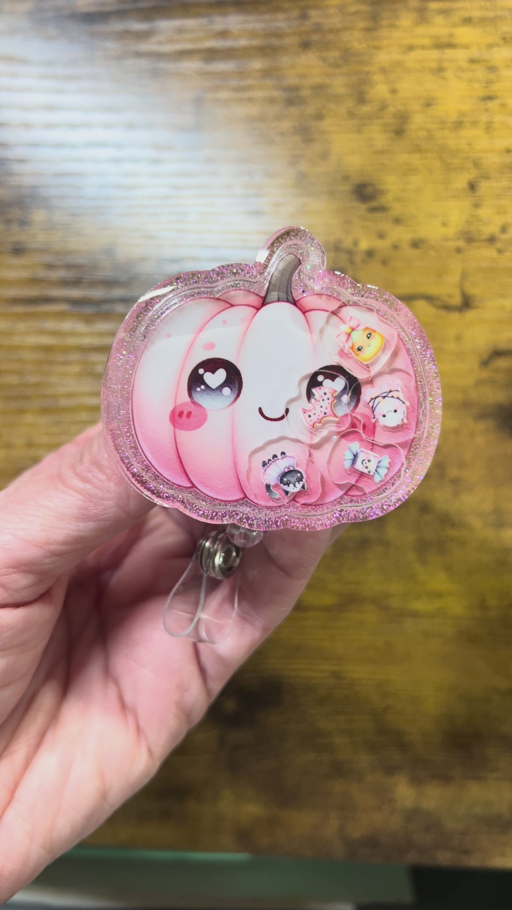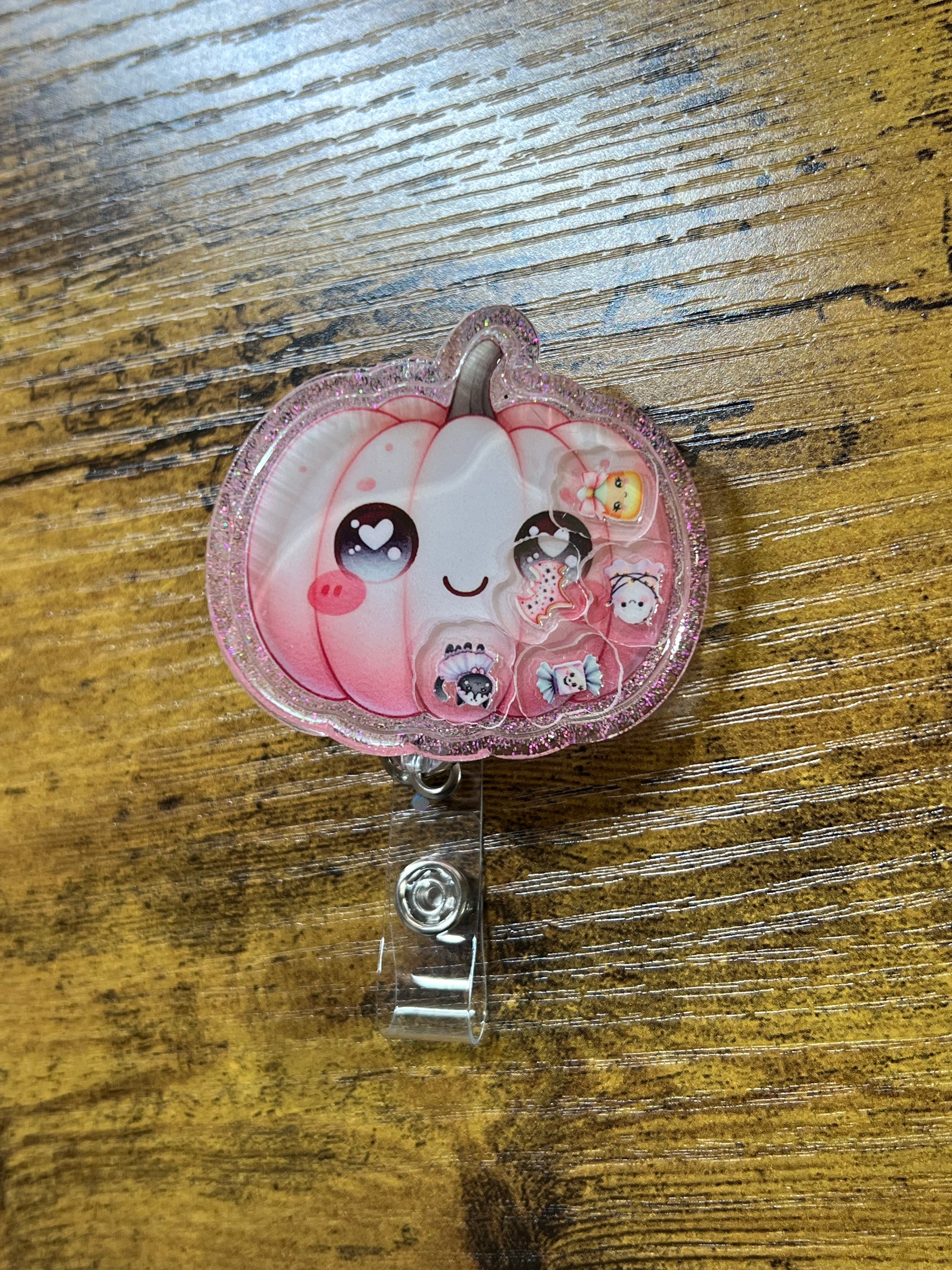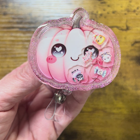 Pink Pumpkin Shaker Acrylic Blank – UV DTF Ready, 2.2”, Badge Reel DIY Kit + Extra Middles