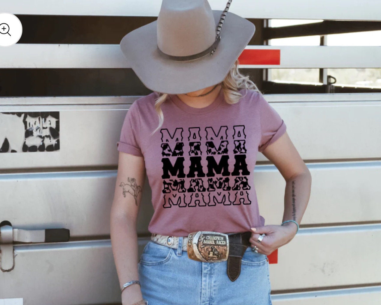 Screen Print Transfer Mama Cowhide Stacked Single Color | Ready to Press | Screen Print Transfer | Black Ink Screen Print Transfer |