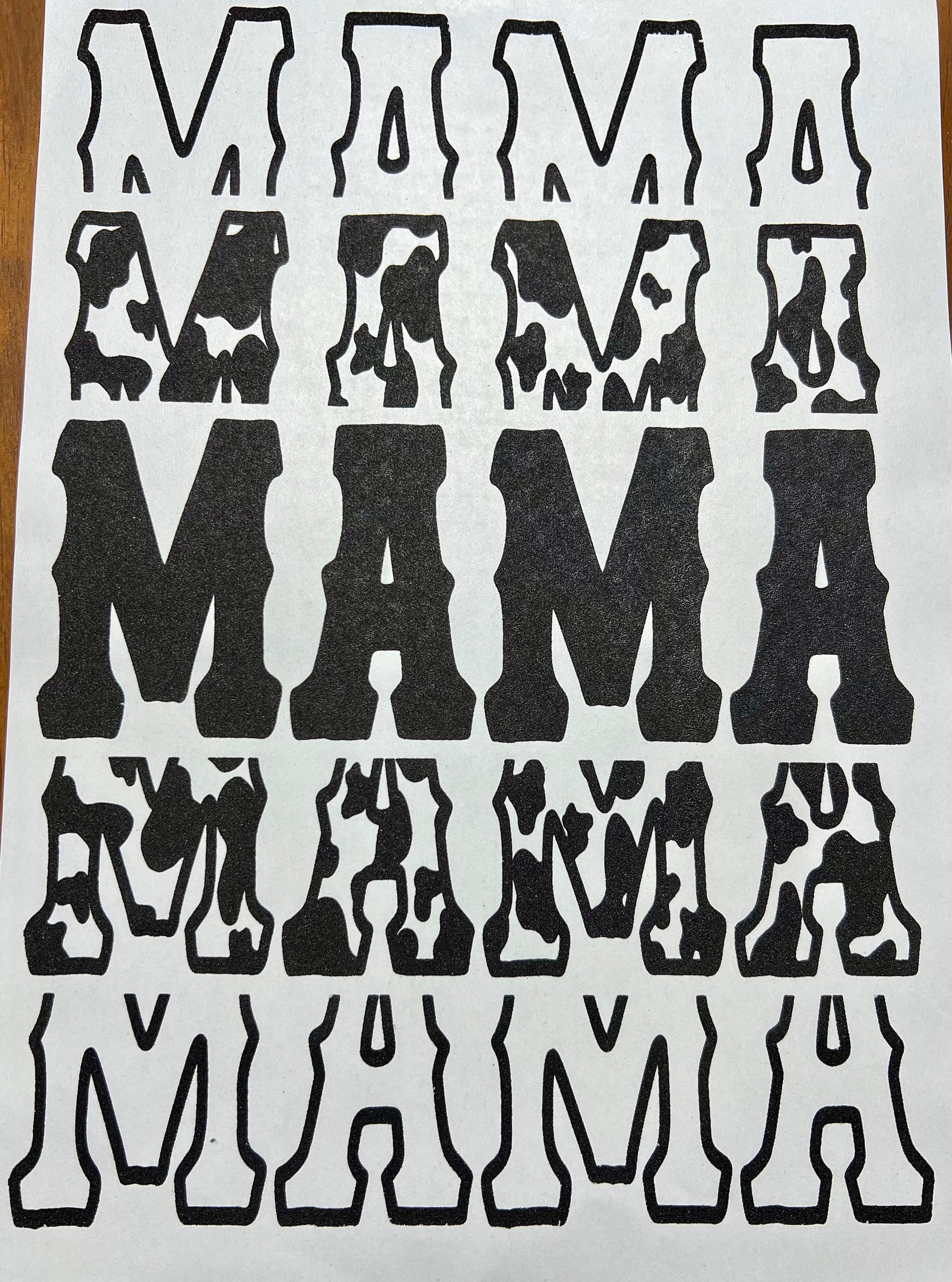 Screen Print Transfer Mama Cowhide Stacked Single Color | Ready to Press | Screen Print Transfer | Black Ink Screen Print Transfer