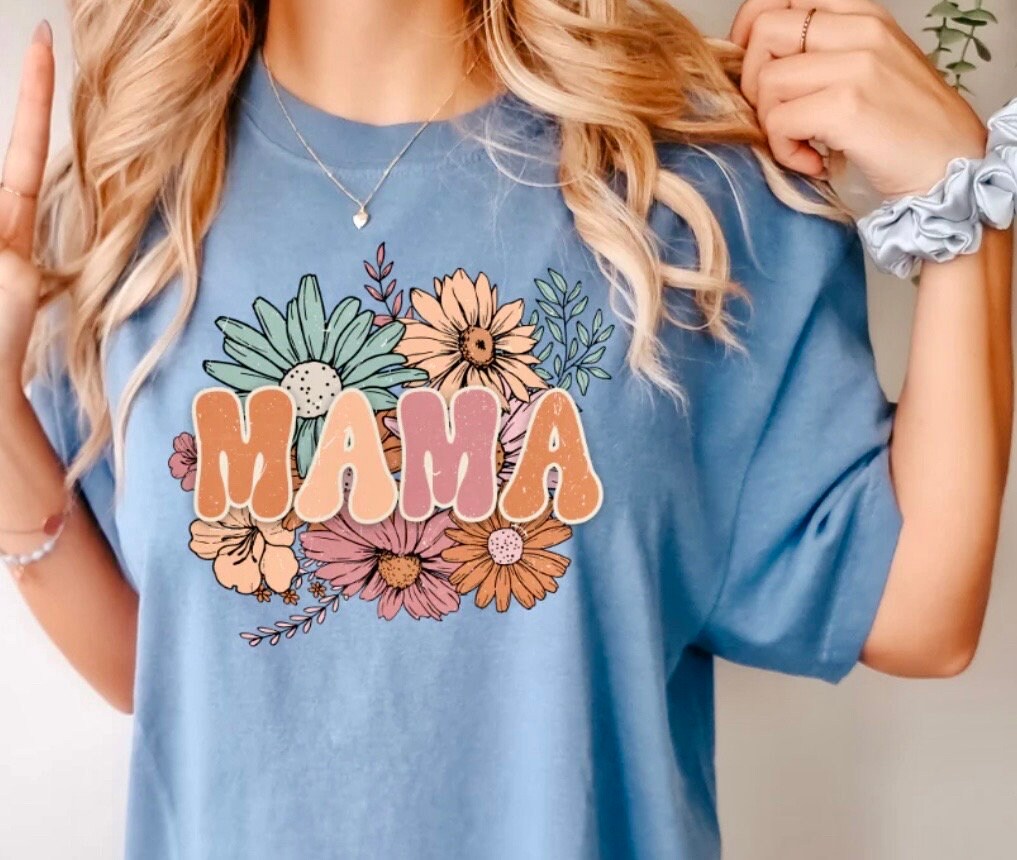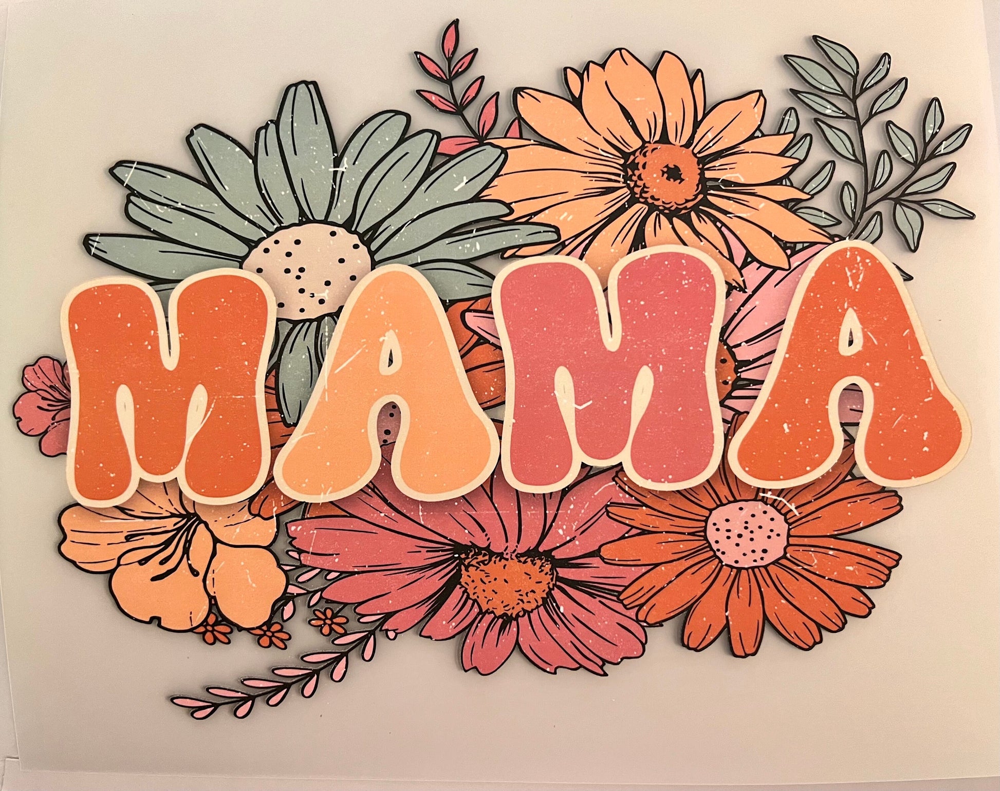 Screen Print Transfer Mama Floral Boho Print Transfer | Ready to Press | Screen Print Transfer | Full Color Matte Clear Transfer
