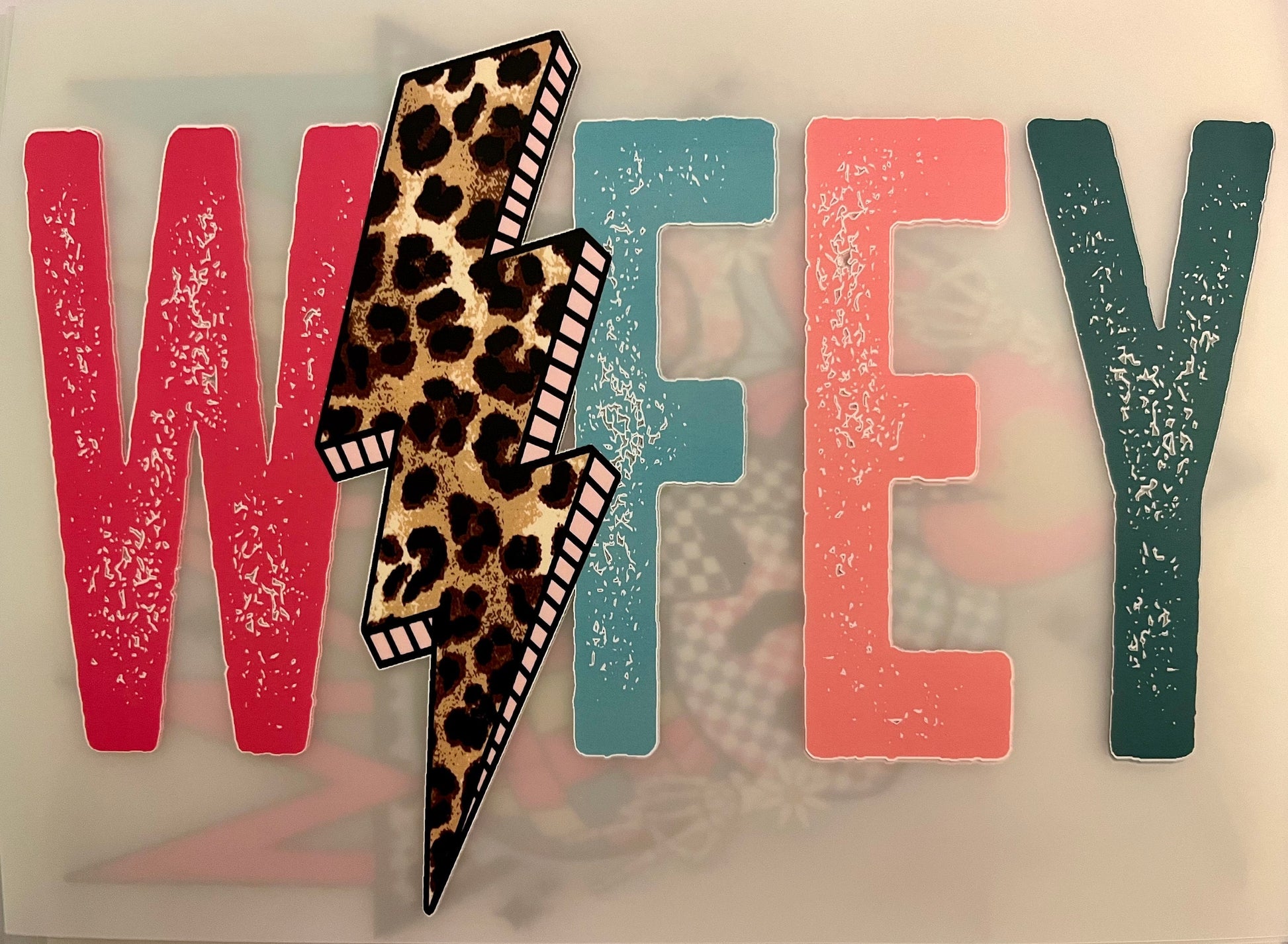 Screenprint Transfer Wifey Leopard Lightening Bolt Print Transfer, Ready to Press, ScreenPrint Tshirt, Full Color Matte Clear Transfer