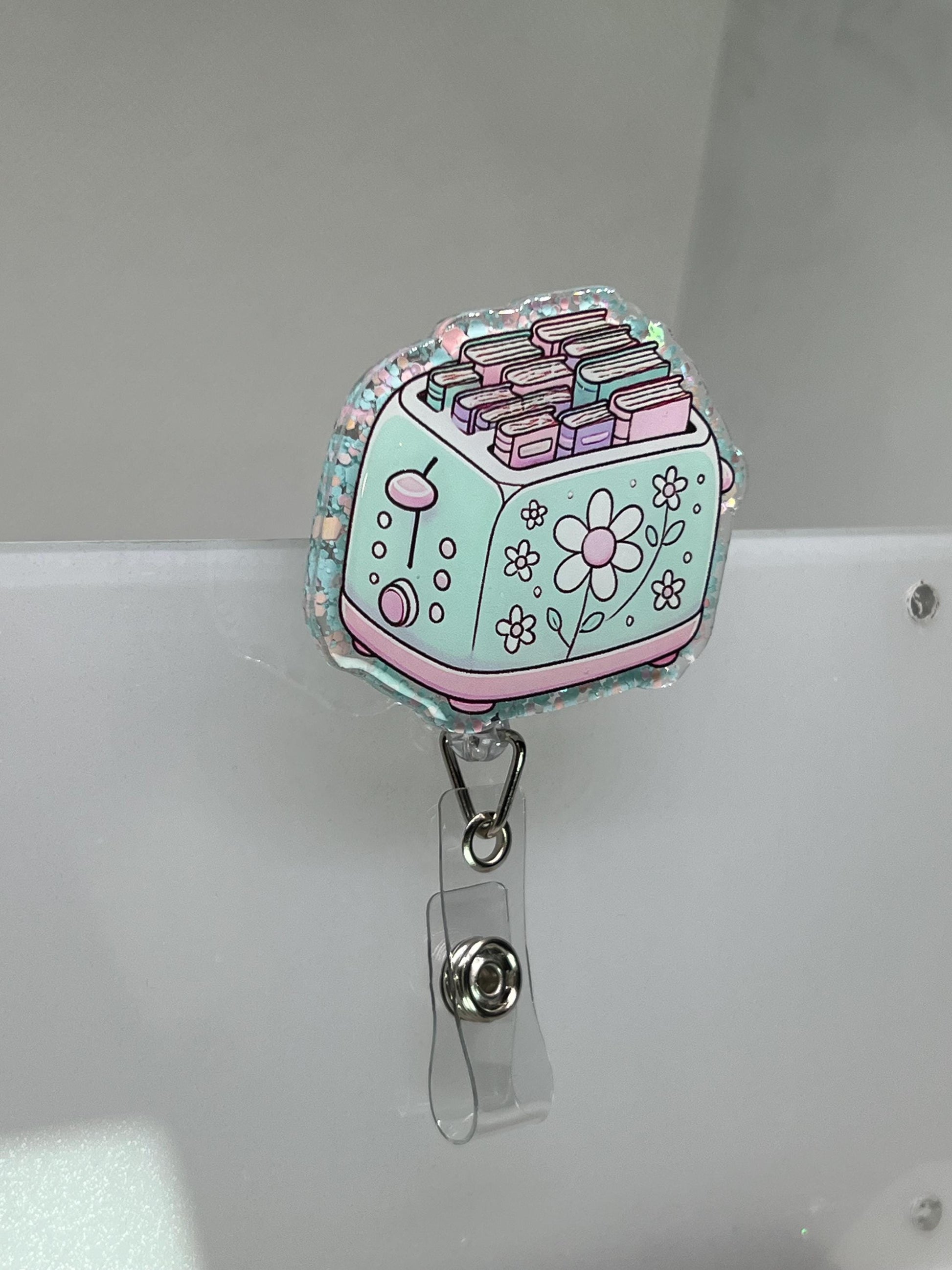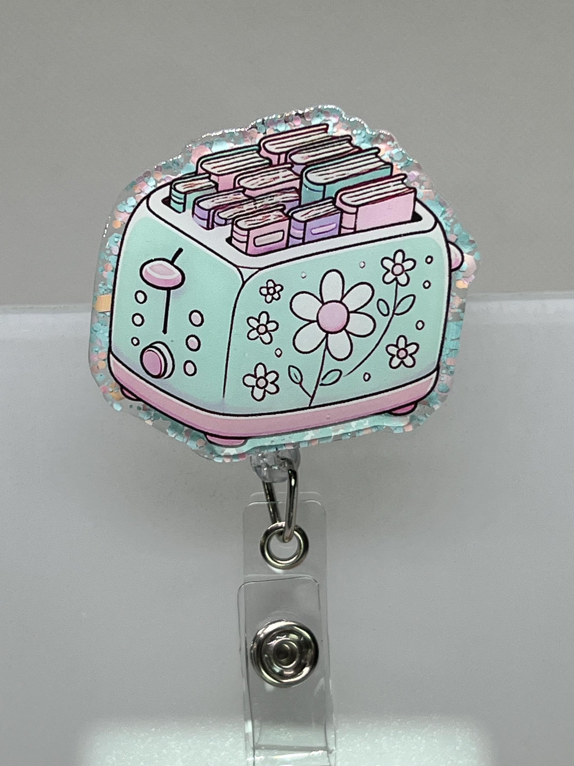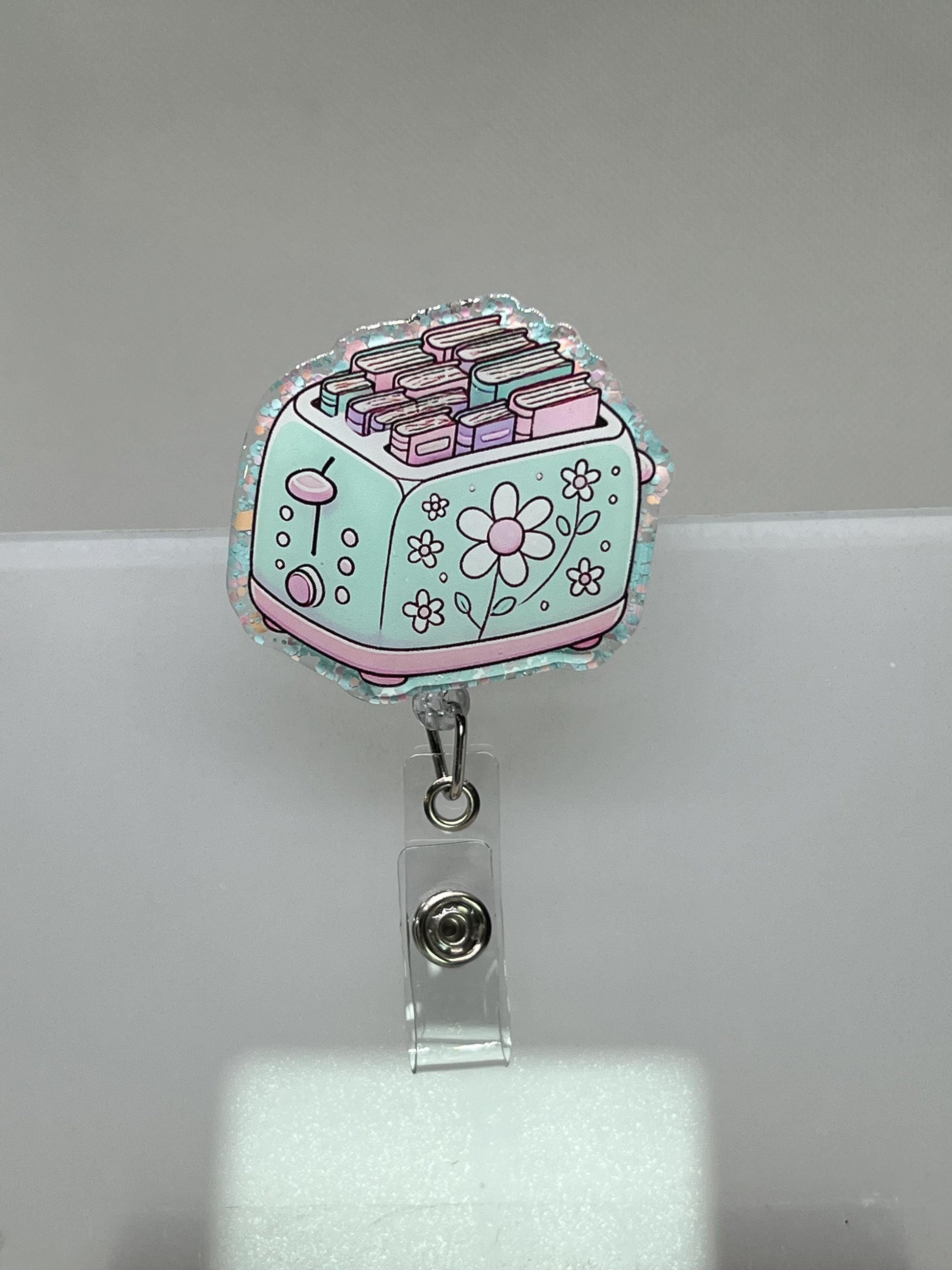 Toaster & Books Badge Reel - Whimsical Retractable ID Holder for Book Lovers, Teachers