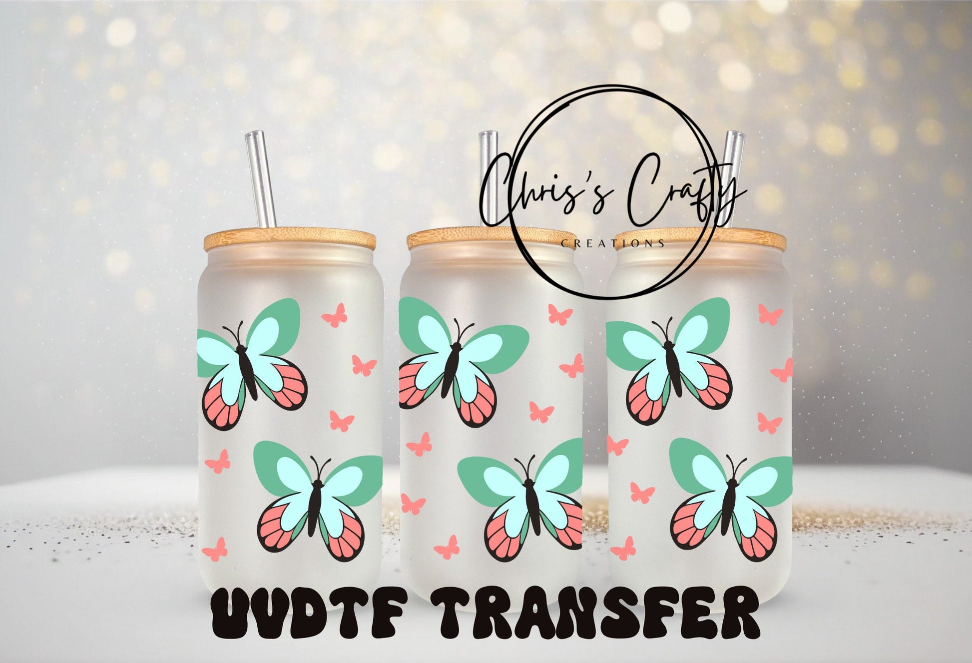 UV DTF Cup Wrap - Waterproof Butterfly Cup Sticker with Permanent Adhesive for 16 oz Glass & 20 oz Can