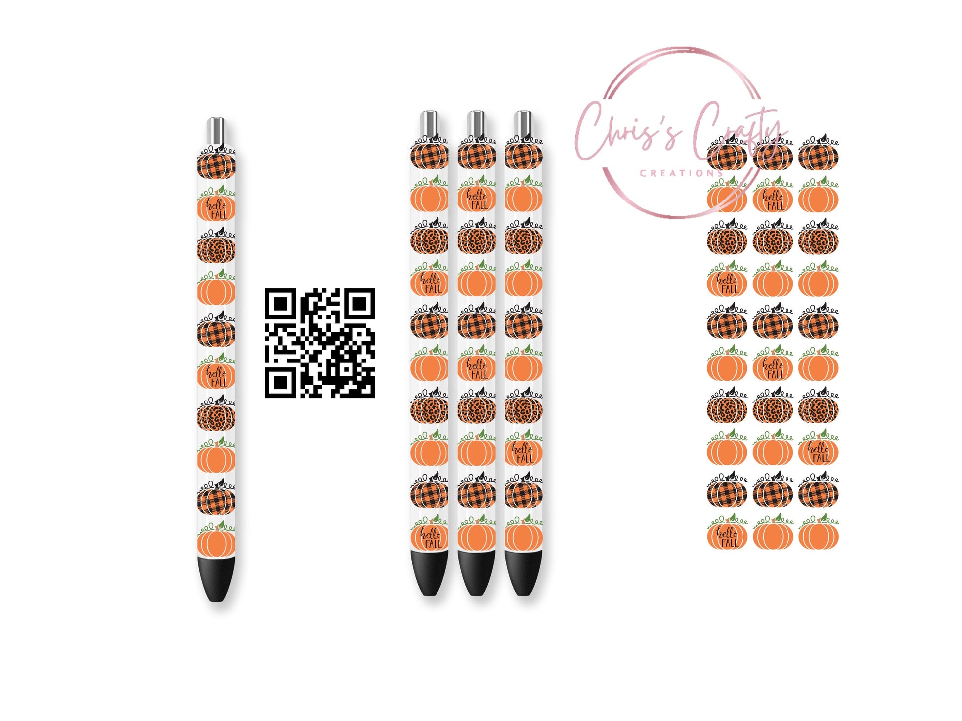 UV DTF Exclusive Fall Checkered Leopard Pumpkins Pen Wrap | Permanent Adhesive | Waterproof | Ink Joy | Ready to apply