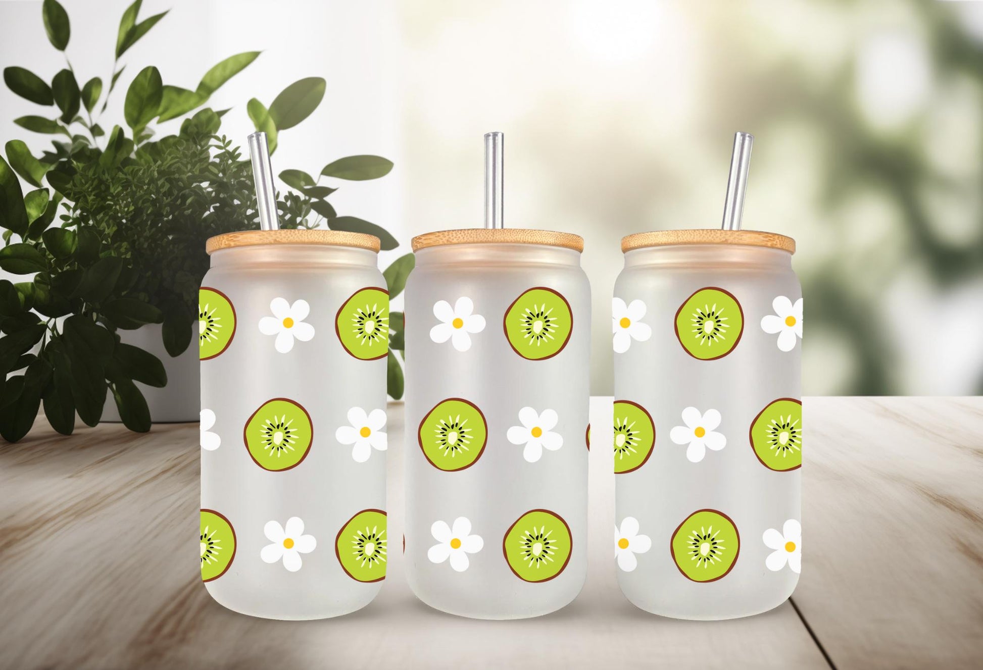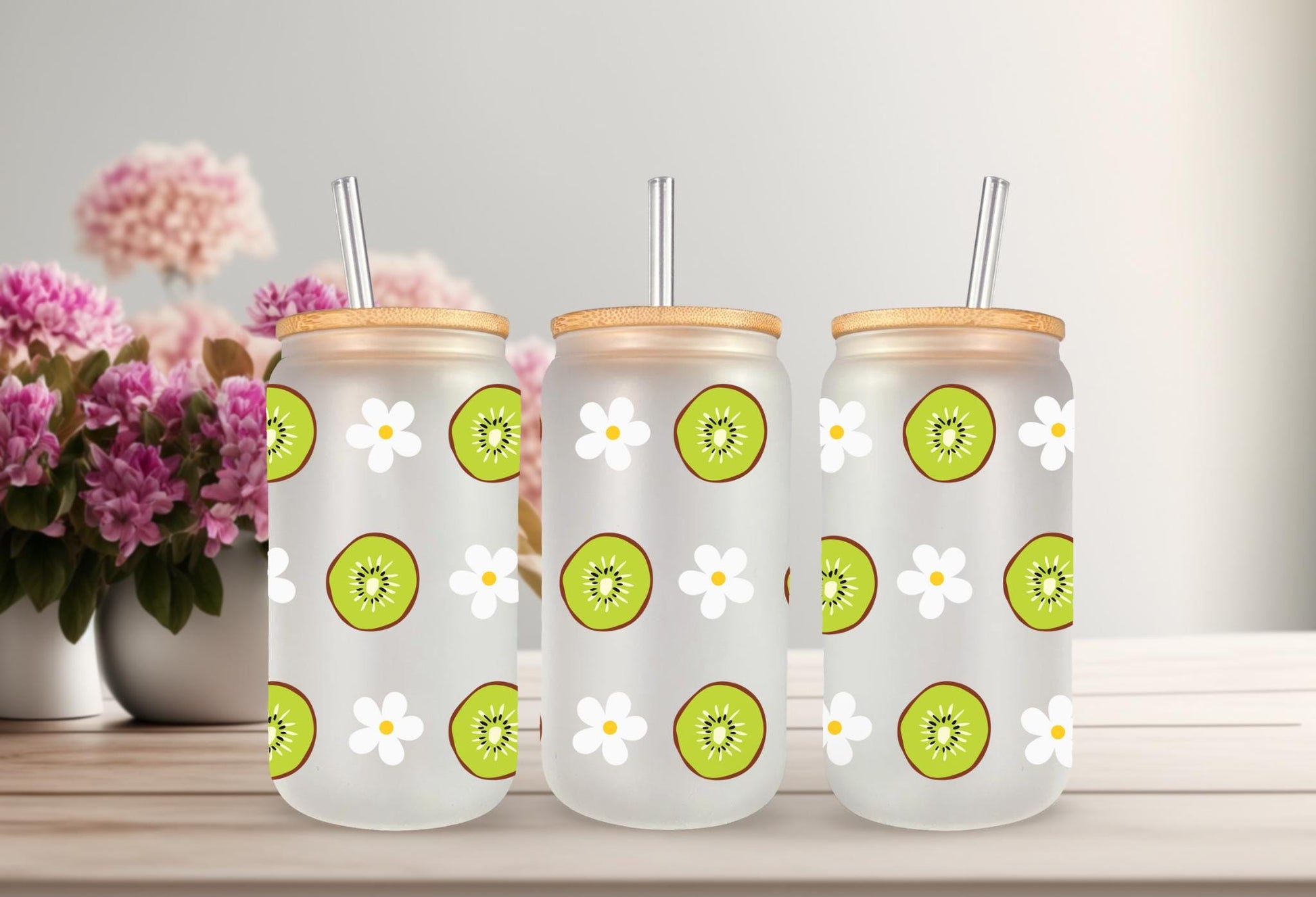 UVDTF Wrap Kiwi & Daisy for 16oz Can Glass Mug Tumbler, Ready to Apply, Permanent Waterproof Adhesive