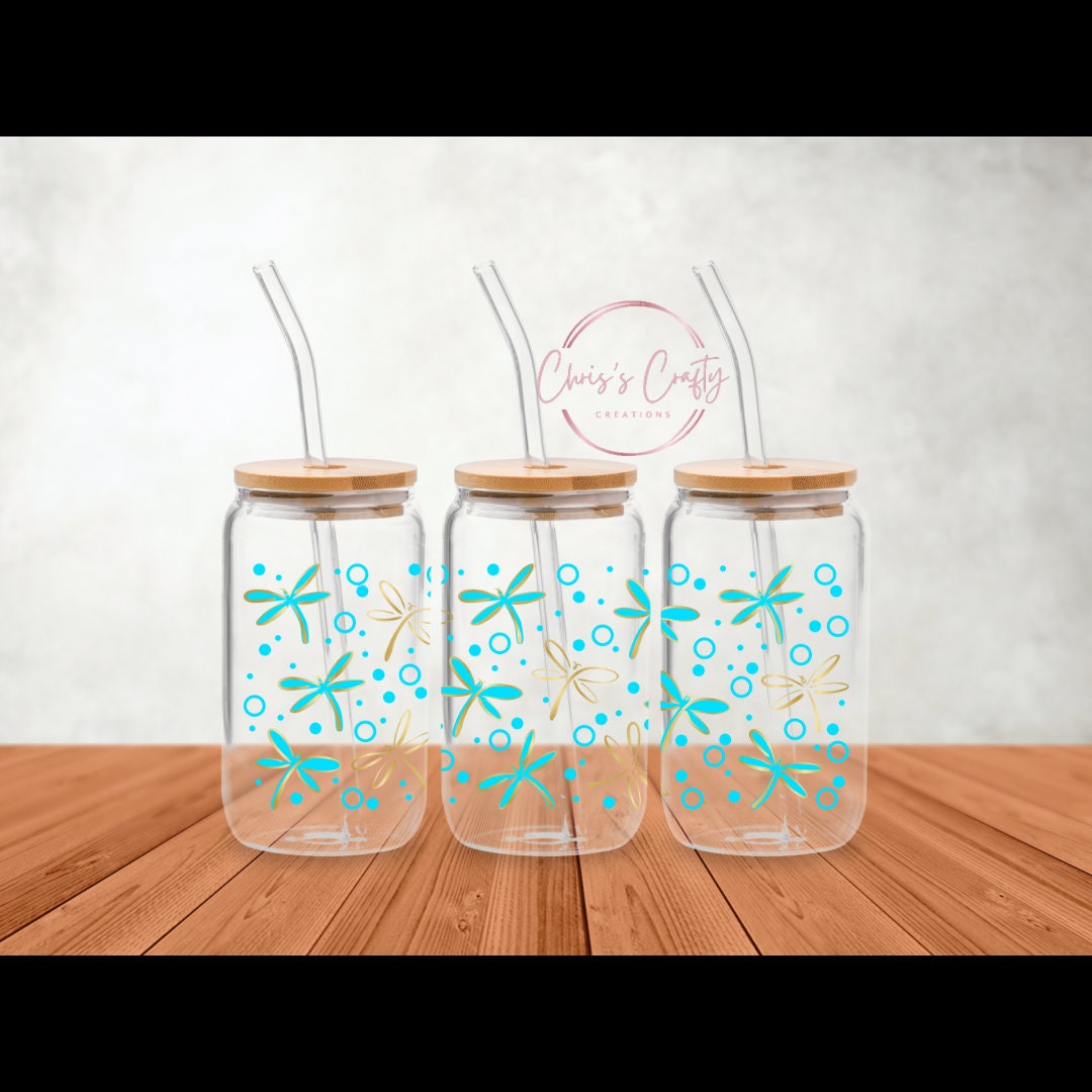 DO NOT USE ALCOHOL TO CLEAN CUP! 1. Peel backing on right or left side creasing it to stay. 2. Place the transfer on the cup ensuring design is straight and positioned correctly. (Once transfer is on the glass it cannot be taken off so please make sure you are positioning your transfer correctly) 3. Press the transfer down, working from right to left or vise versus, pushing out any bubbles. 4. Rub all over the design with your fingers. The more rubbing the better. 5. Peel clear film off slowly and you're done! Hand wash only please We are not responsible for application mishaps. *Please note: Not all brands of 16 oz. glass cups have the exact same measurements. They can differ by a couple of millimeters. Our wraps have been measured to fit Libbey glass cans. Adjustments may be necessary*