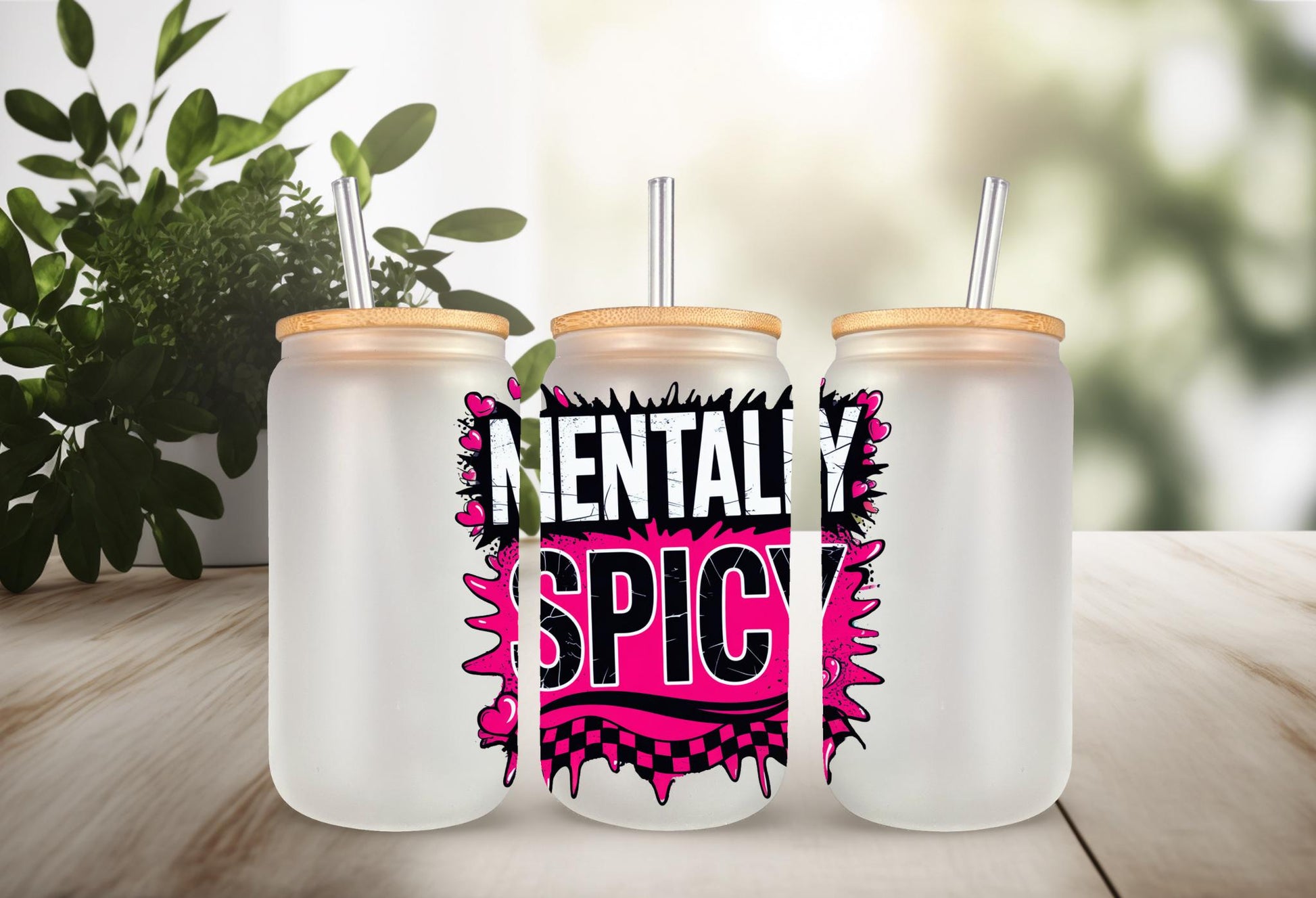 UVDTF Decal Mentally Spicy 16oz Can Glass Mug Tumbler, Mental Decal, Ready to Apply, Permanent Waterproof Adhesive