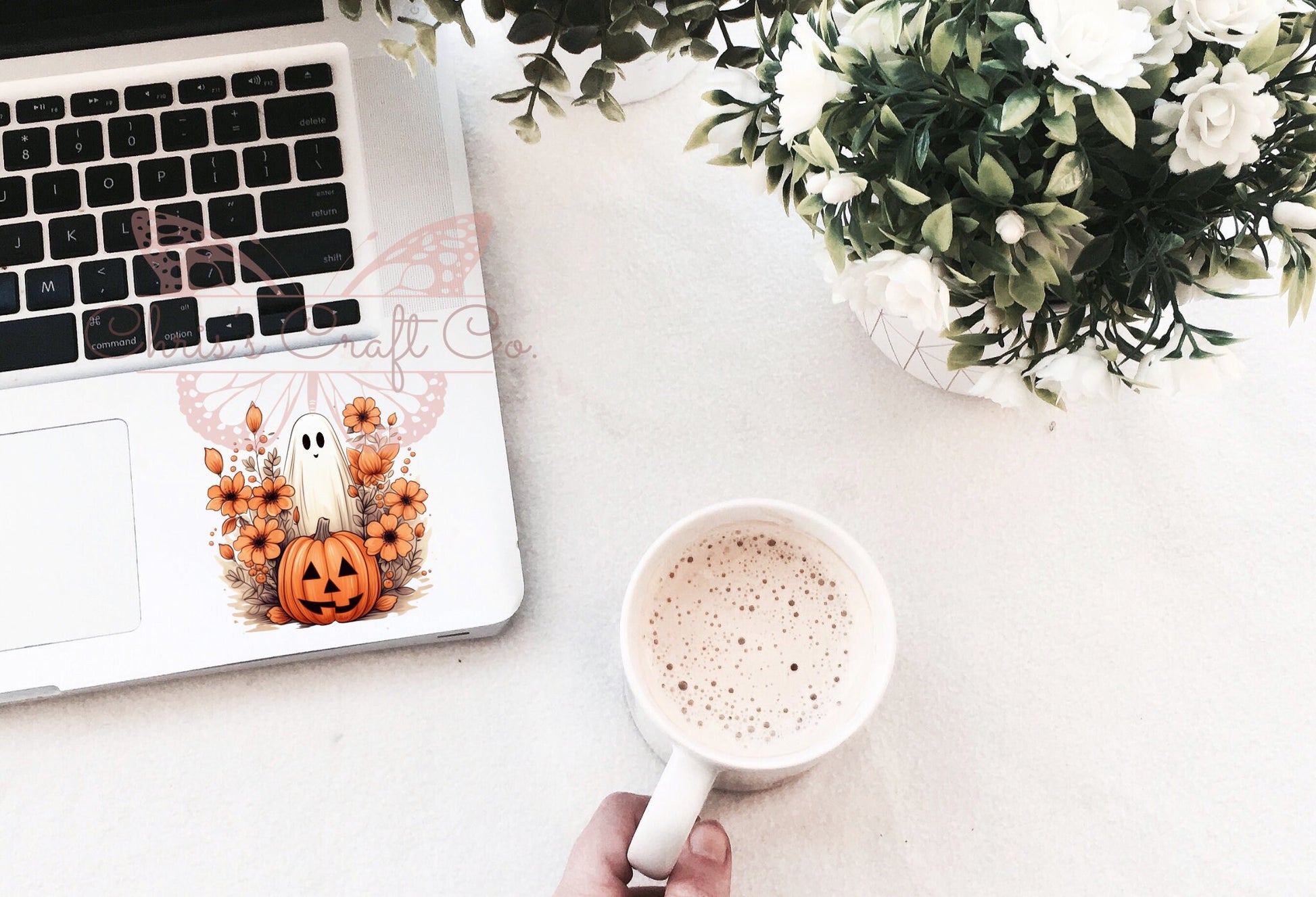 UVDTF Decal Pumpkin Floral Ghost 16oz Can Glass Mug Tumbler, Fall Decal, Ready to Apply, Permanent Waterproof Adhesive, add on a cup