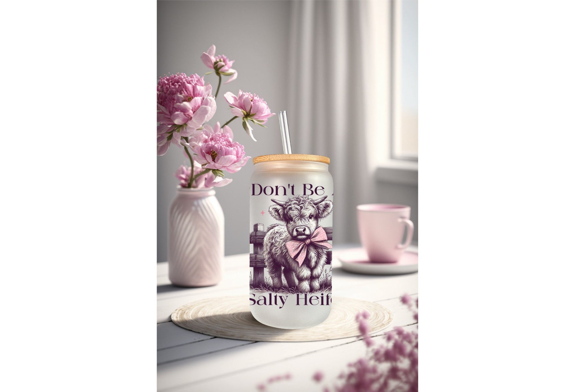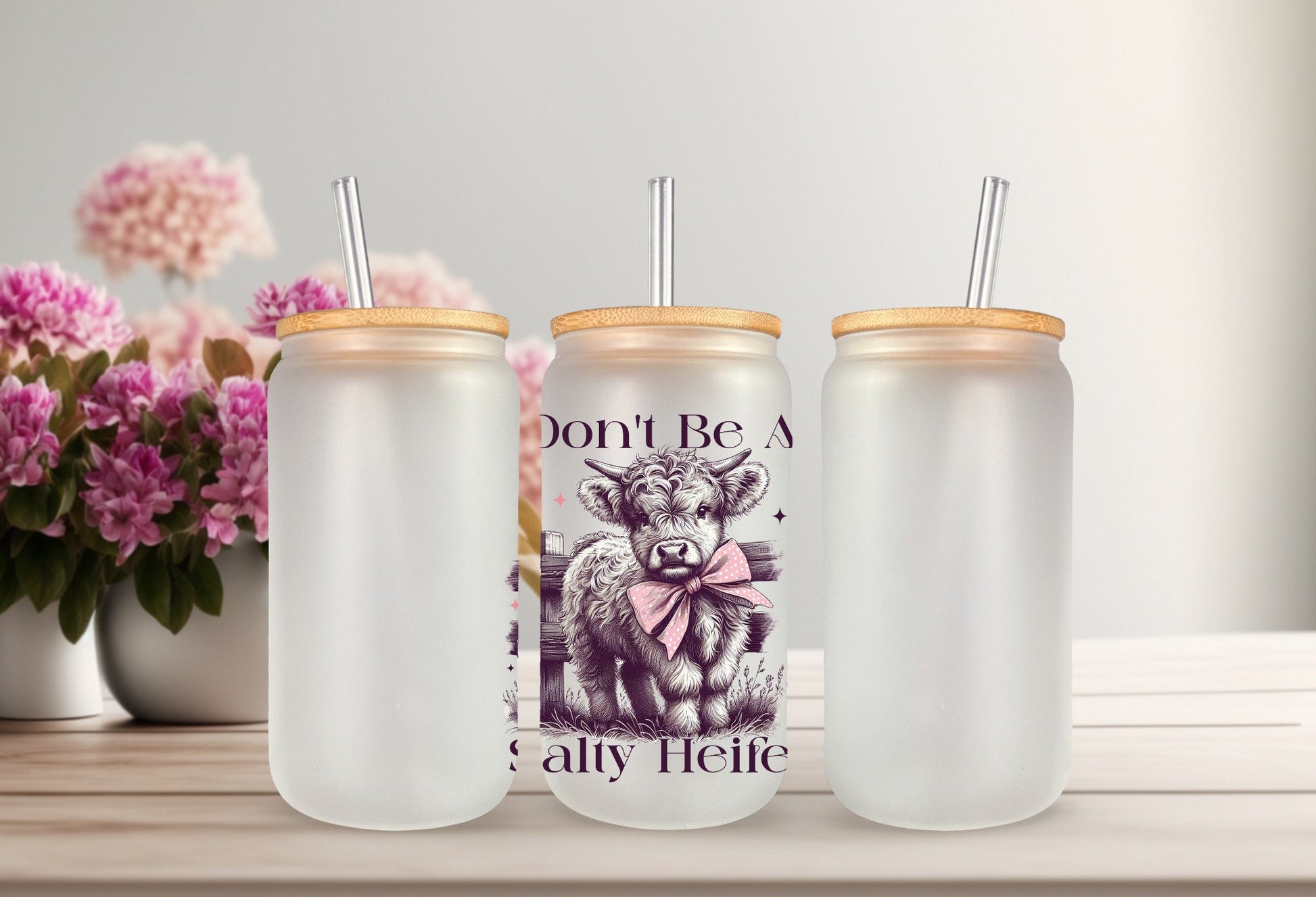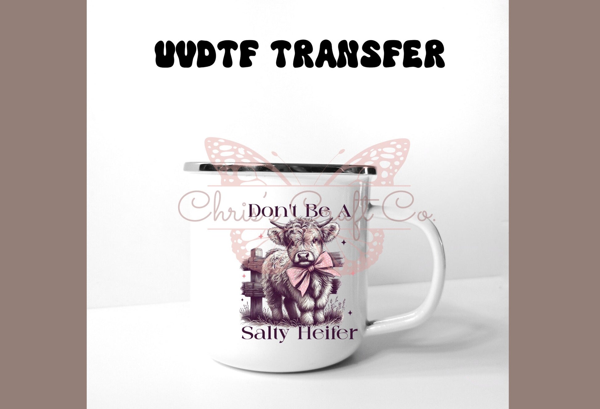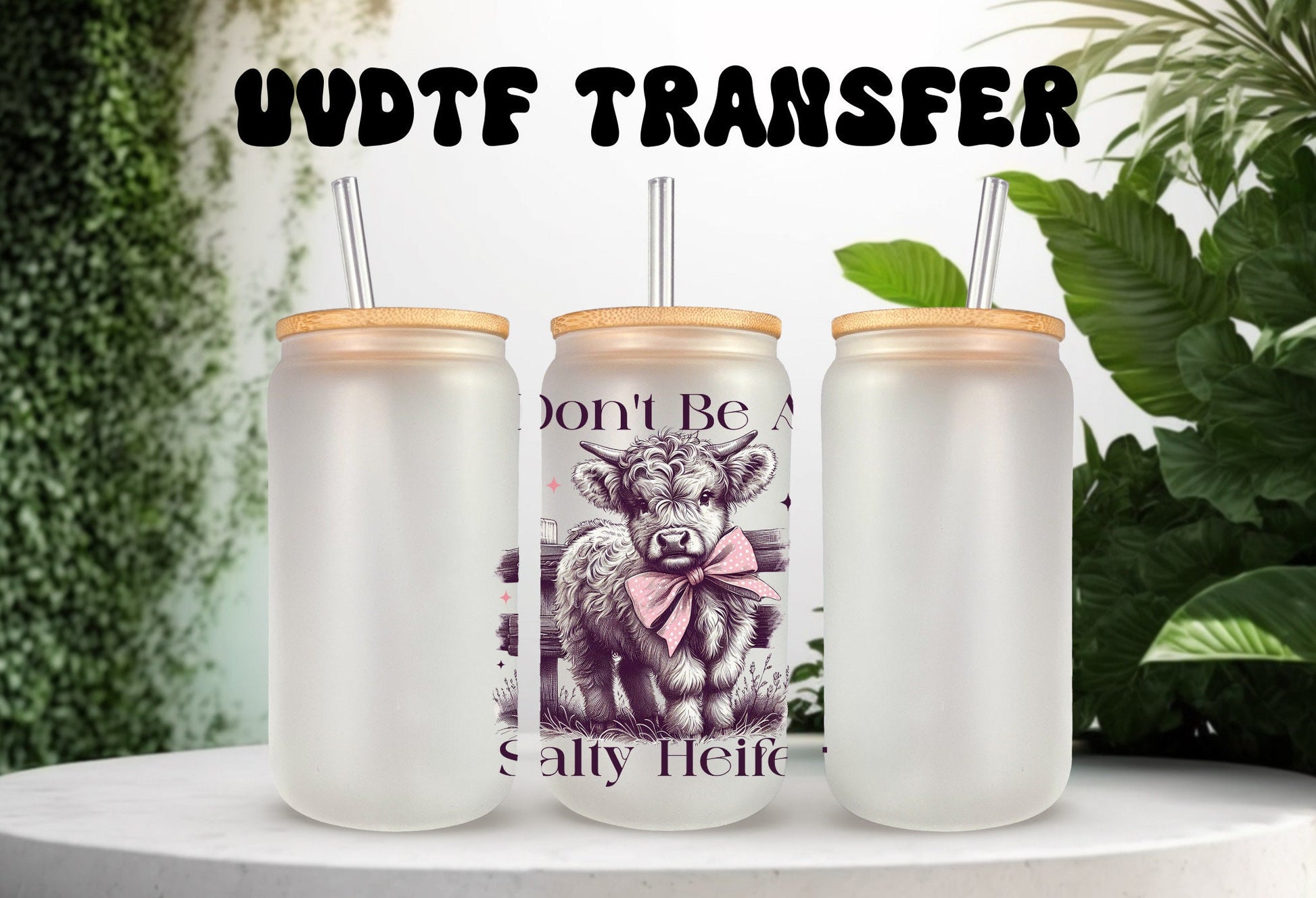 Enhance your cup decorating game with the UVDTF Decal Salty Heifer. This funny and sarcastic decal transfer is perfect for adding a touch of humor to your beverage containers. Show off your wit and personality while creating unique and eye-catching designs. Add the Salty Heifer decal to your collection today.