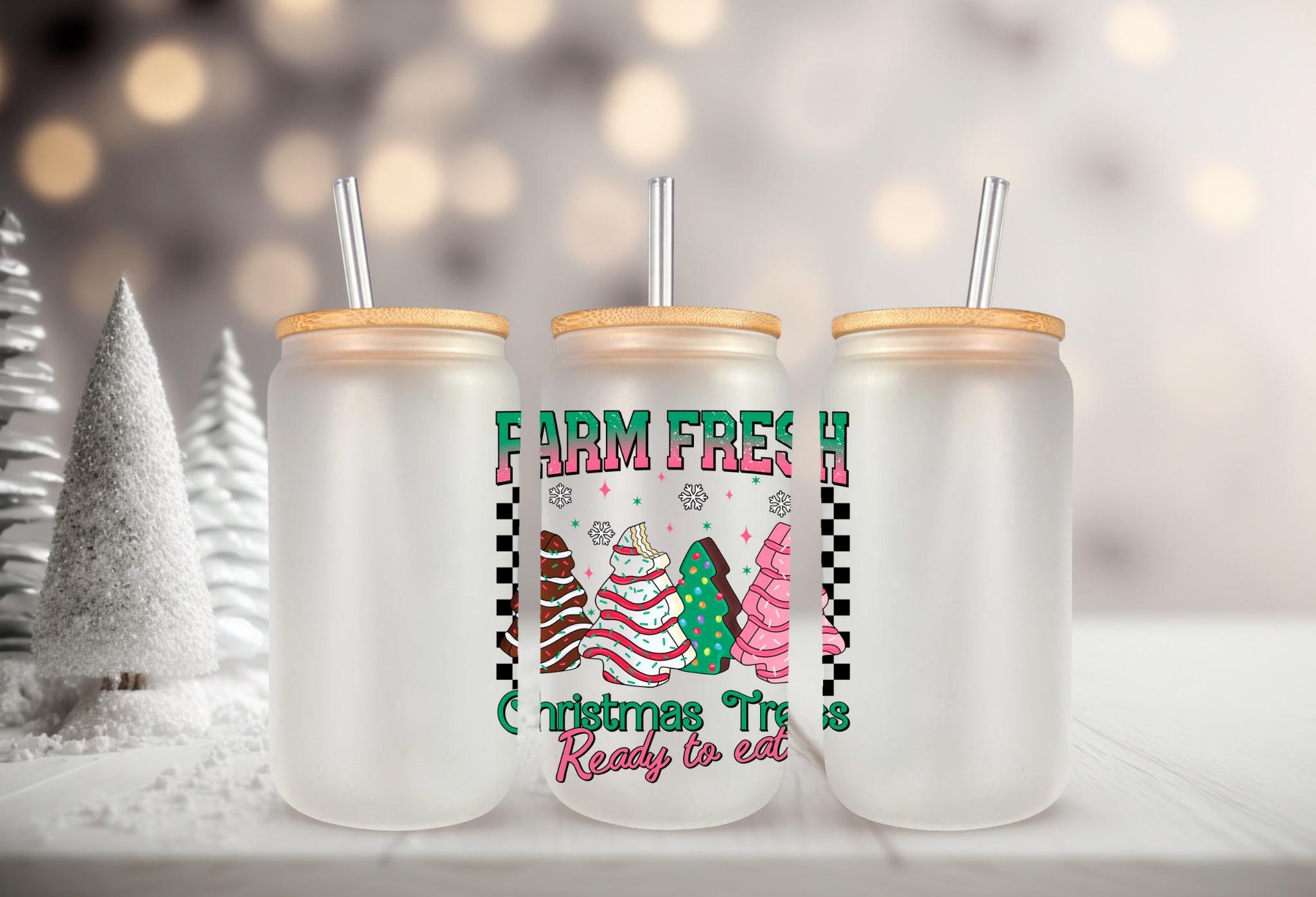 UVDTF Decal Tree Cake Farm Fresh 16oz Can Glass Mug Tumbler, Christmas Tree Cake Decal, Ready to apply, Permanent Waterproof Adhesive