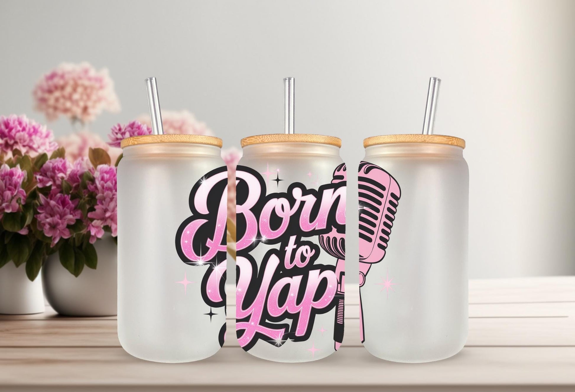 UVDTF Decal Vintage Born To Yap 16oz Can Glass Mug Tumbler, Sarcastic Funny Decal, Ready to Apply, Permanent Waterproof Adhesive