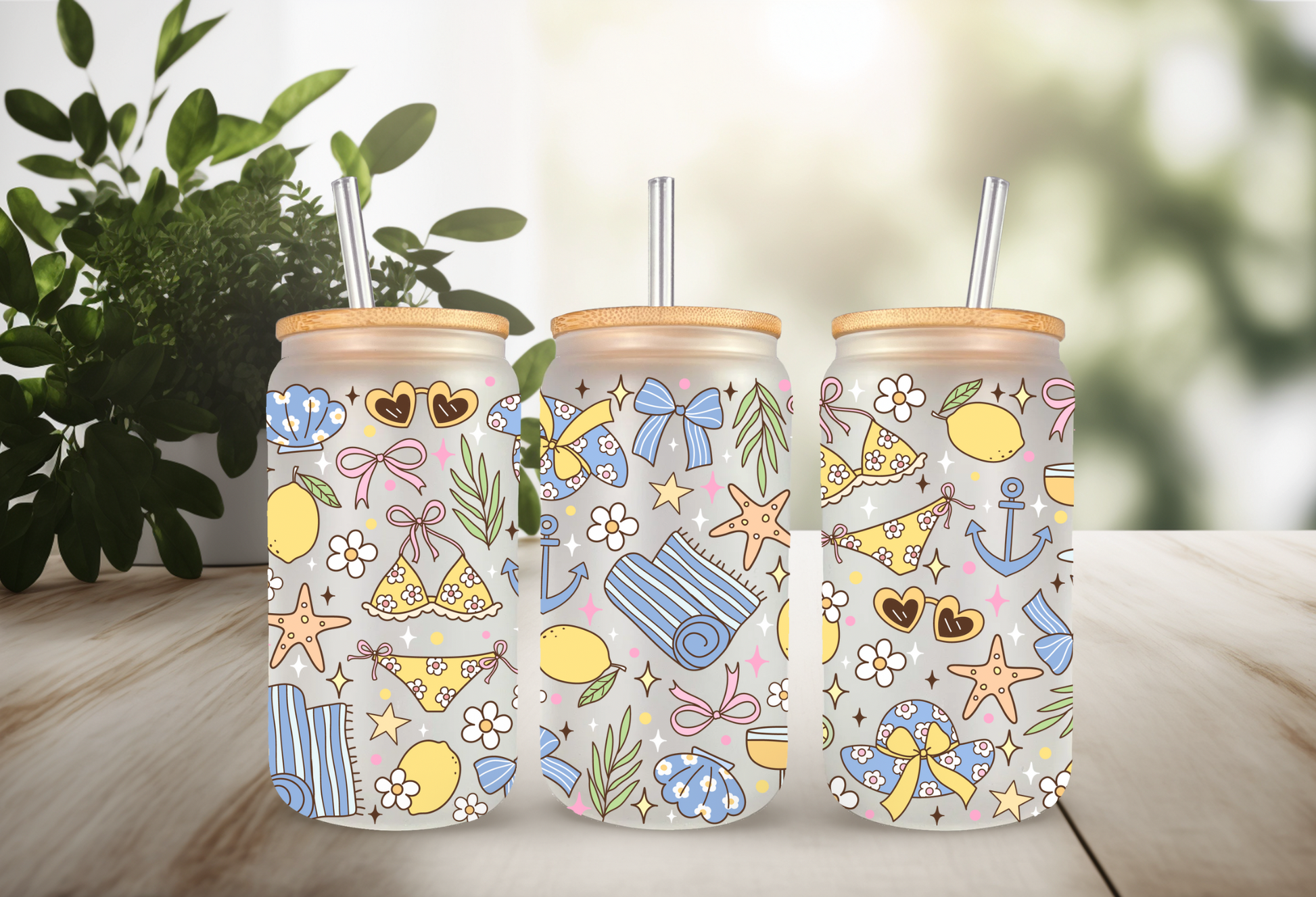 Elevate your cup game with the UVDTF Wrap Girly Summer Lemon 16oz Can Glass Mug Tumbler. With a permanent waterproof adhesive, this tumbler is perfect for adding a refreshing fruit summer design to your cups. Make every sip feel like a tropical vacation, and decorate your cups with ease.