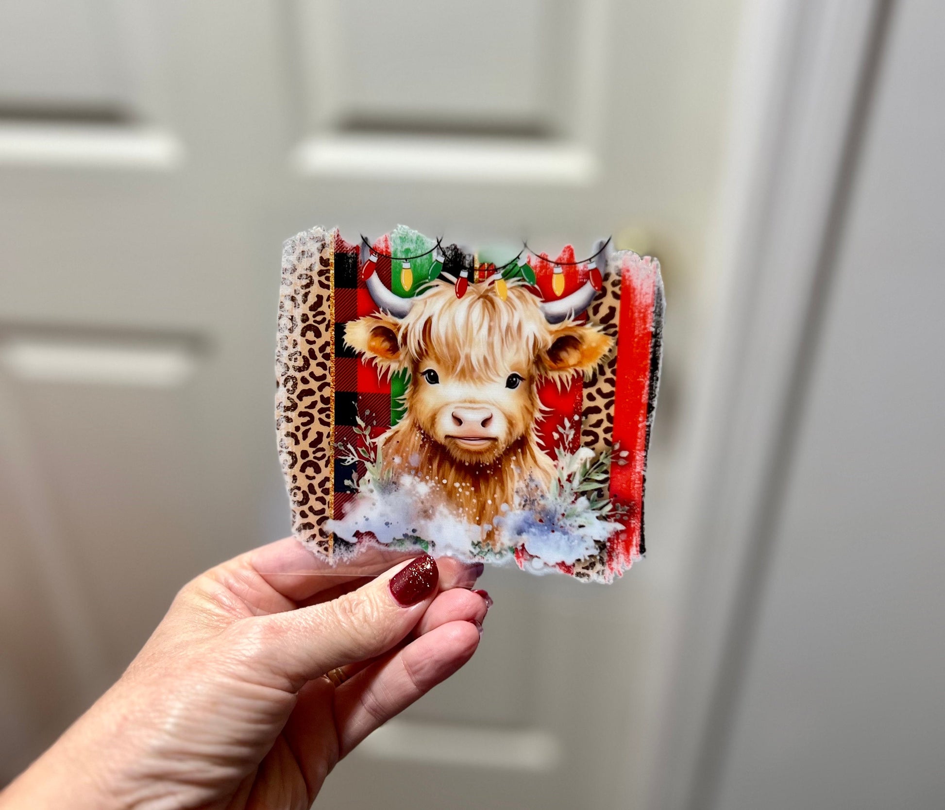 UVDTF Decal Christmas Leopard Highland Cow for 16oz Can Glass Mug Tumbler, Ready to Apply, Permanent Waterproof Adhesive