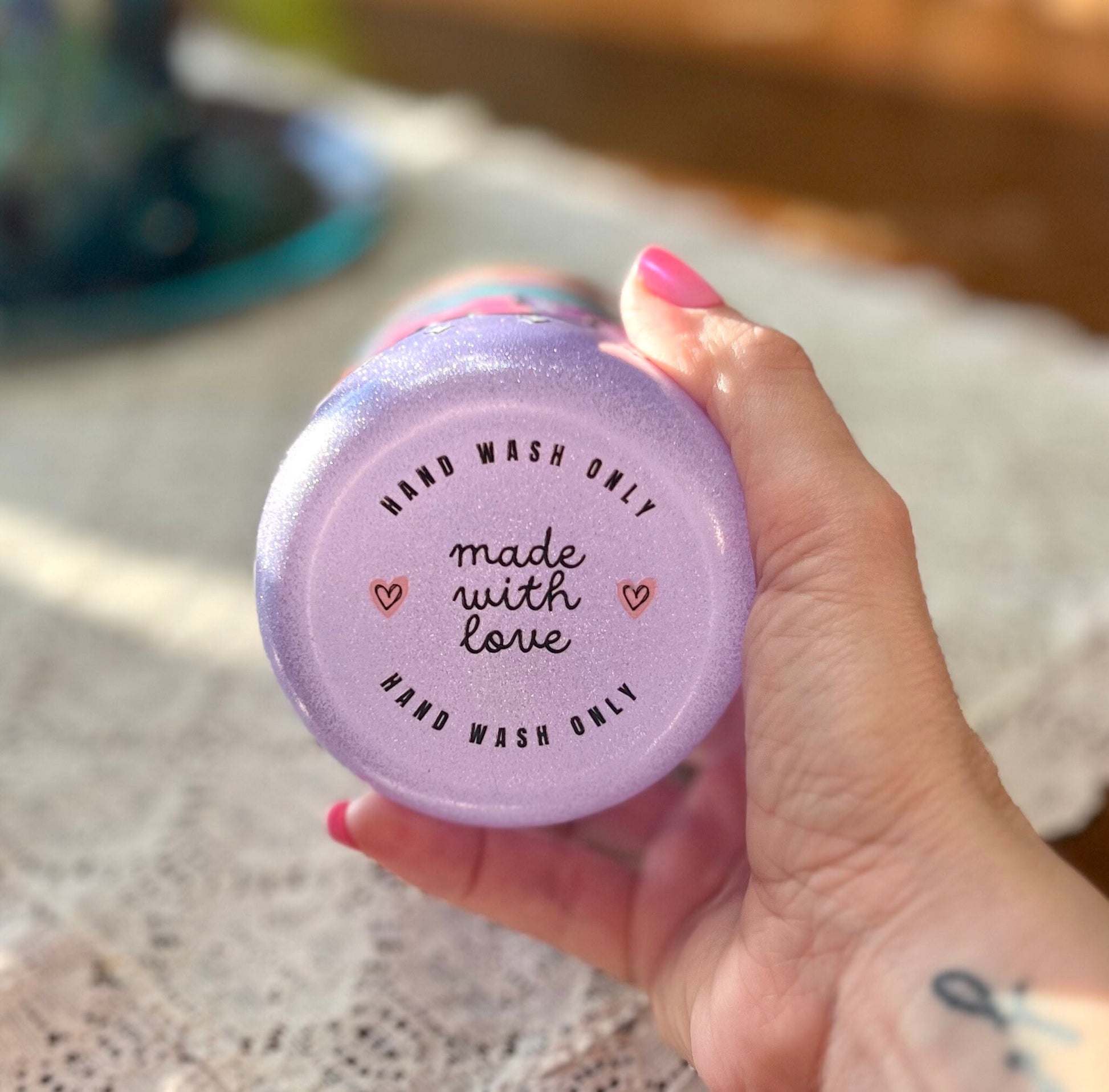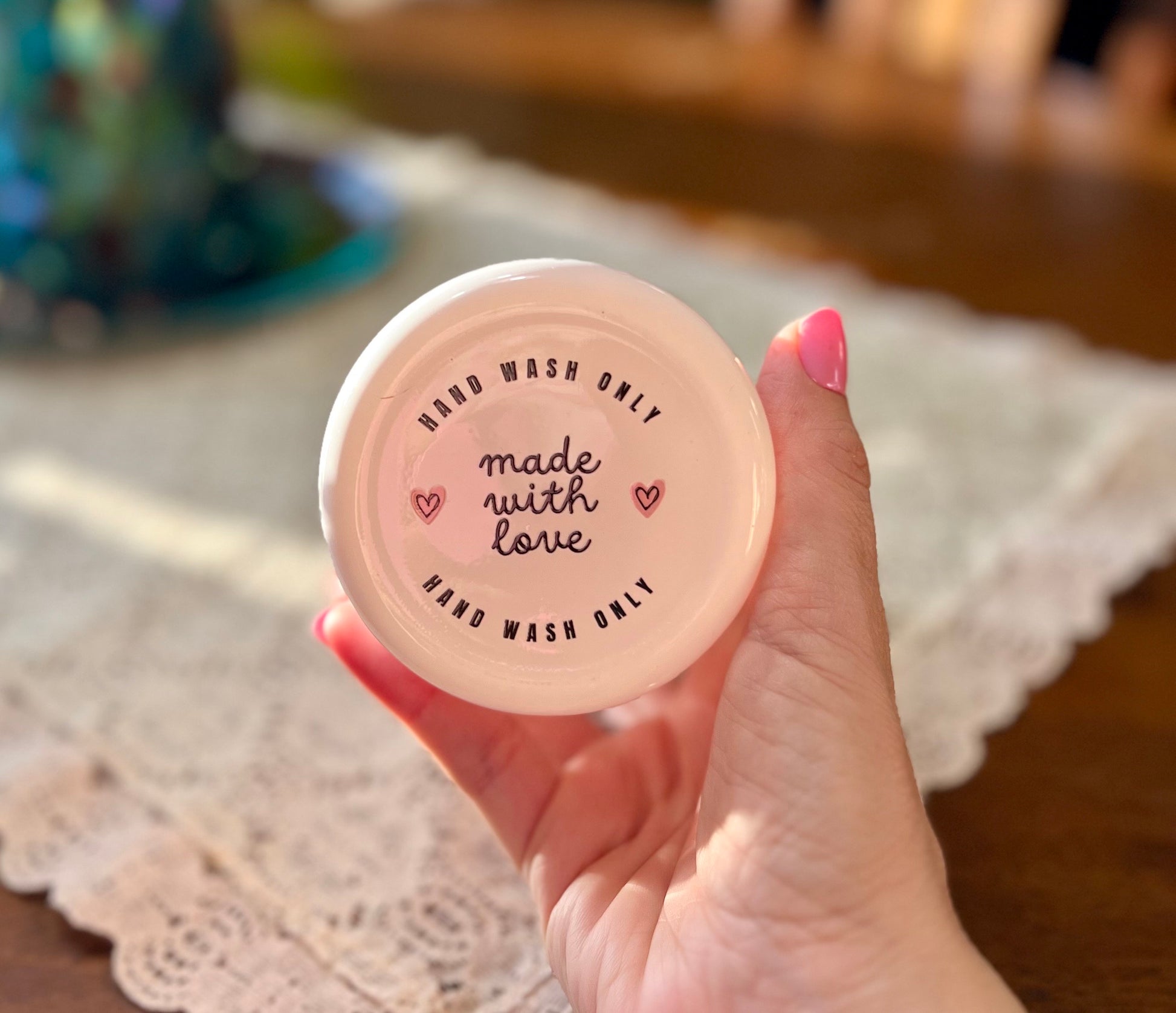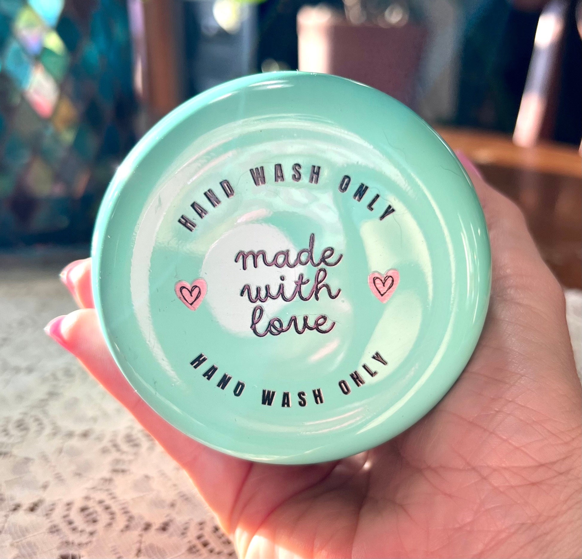 UVDTF Transfer Hand Wash Only 2" Round Made with Love for glasses and cups by the sheet, Permanent Waterproof Adhesive, Ready to Apply
