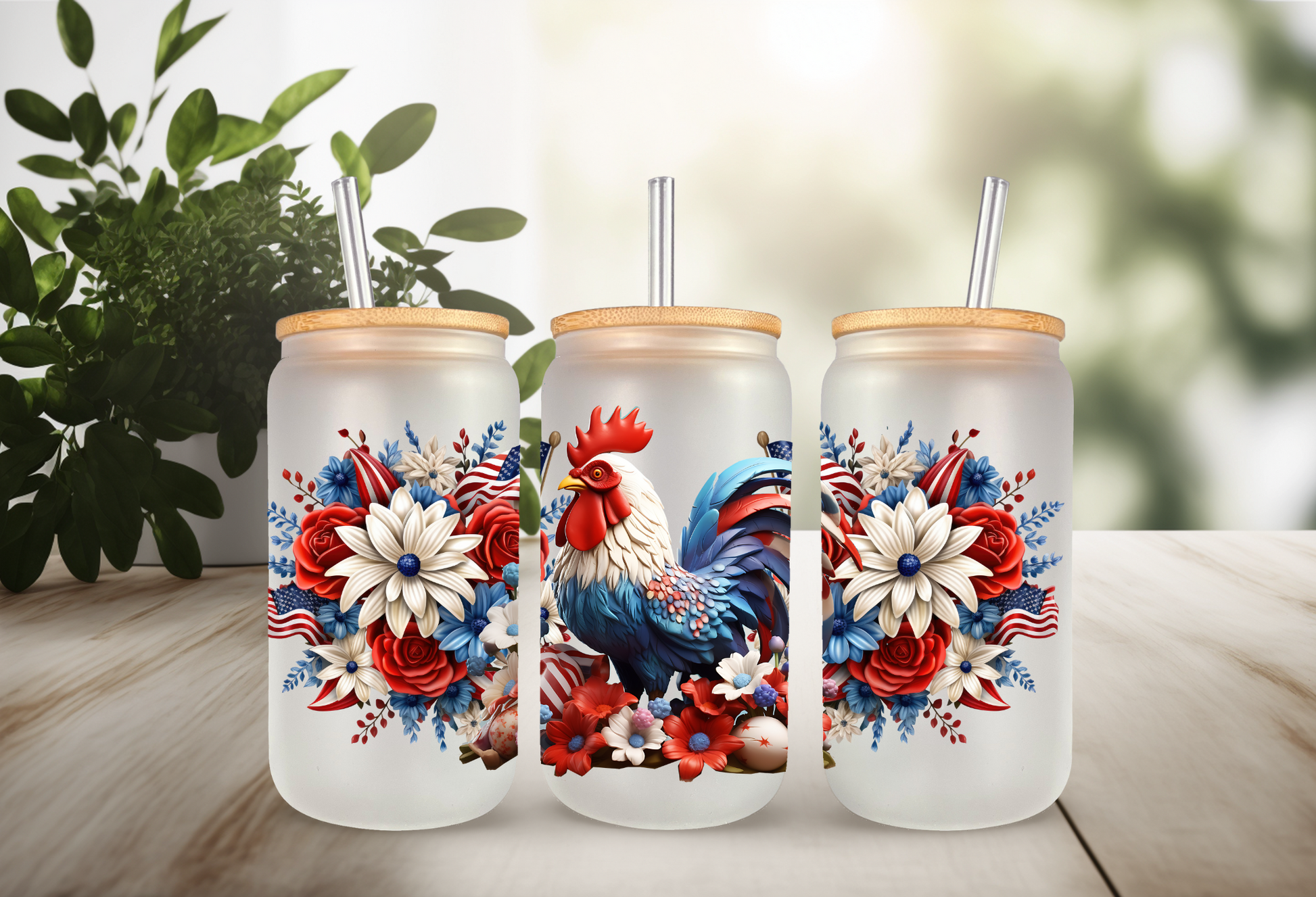 UVDTF Wrap America Chicken for 16 oz Can Glass, Mug, or Tumbler, Rooster Wrap, Ready to apply, Permanent Adhesive Waterproof, Apply to cup