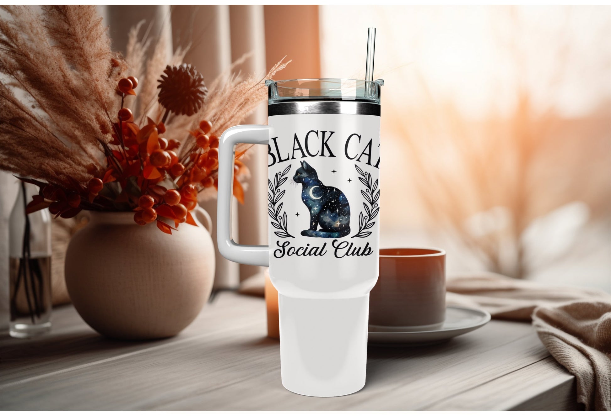 UVDTF Wrap Black Cat Social Club Coquettes Bows 16 oz Can Glass, Mug, Tumbler, Ready to Apply, Permanent Waterproof Adhesive