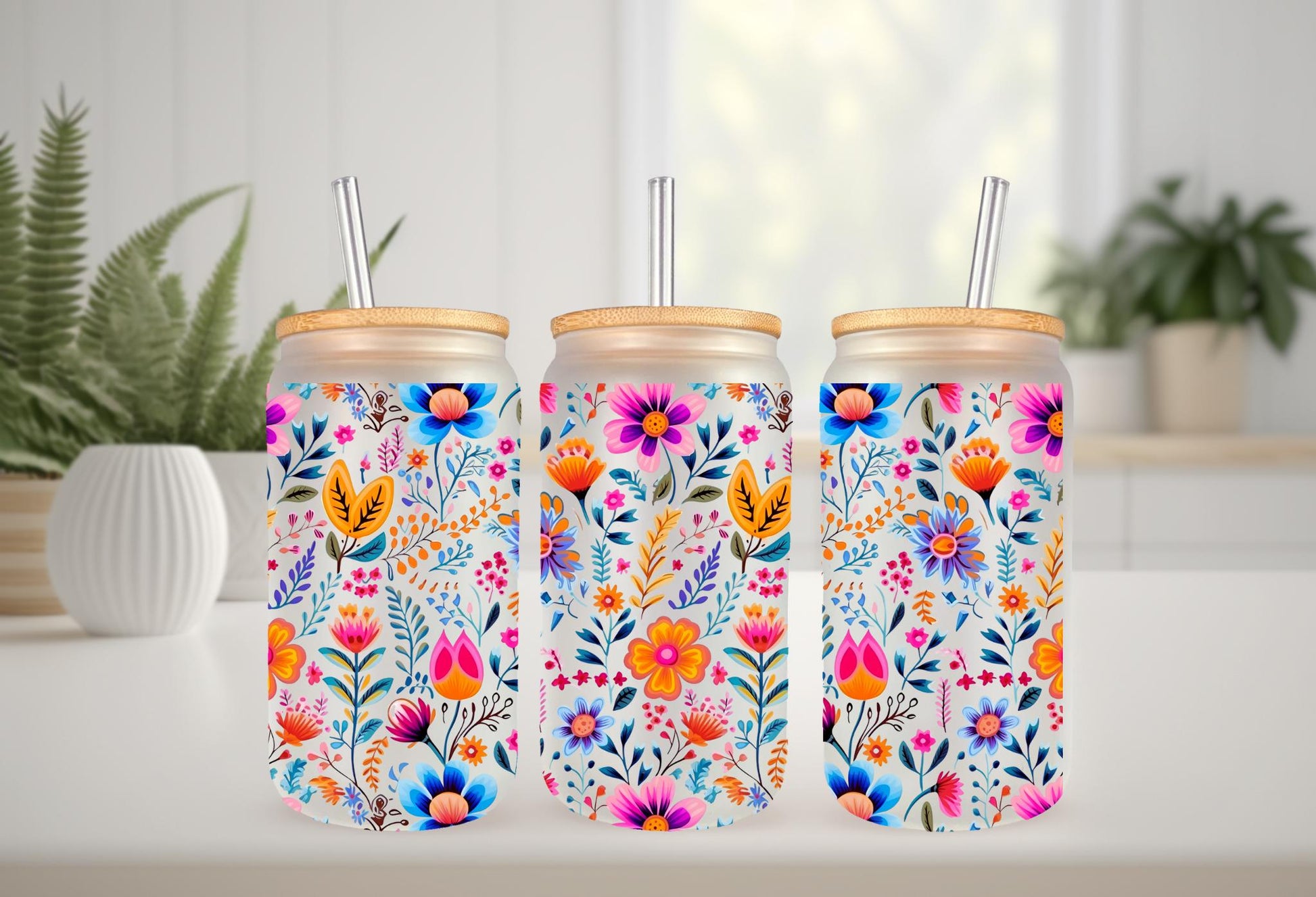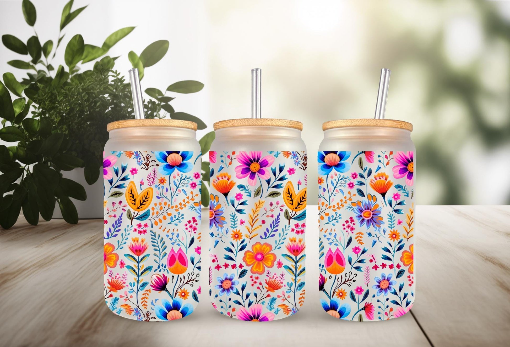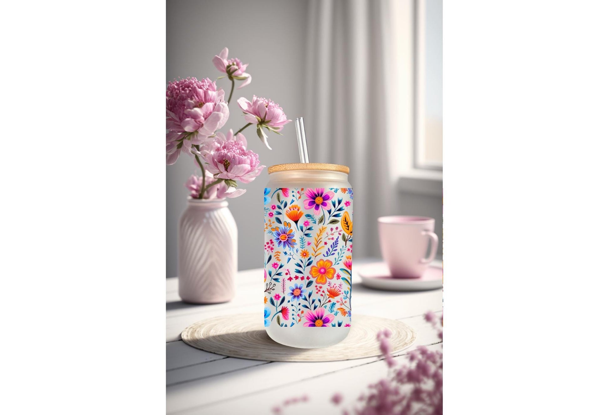 UVDTF Wrap Boho Flower for 16oz Can Glass Mug Tumbler, Floral Wrap, Ready to apply, Permanent Waterproof Adhesive