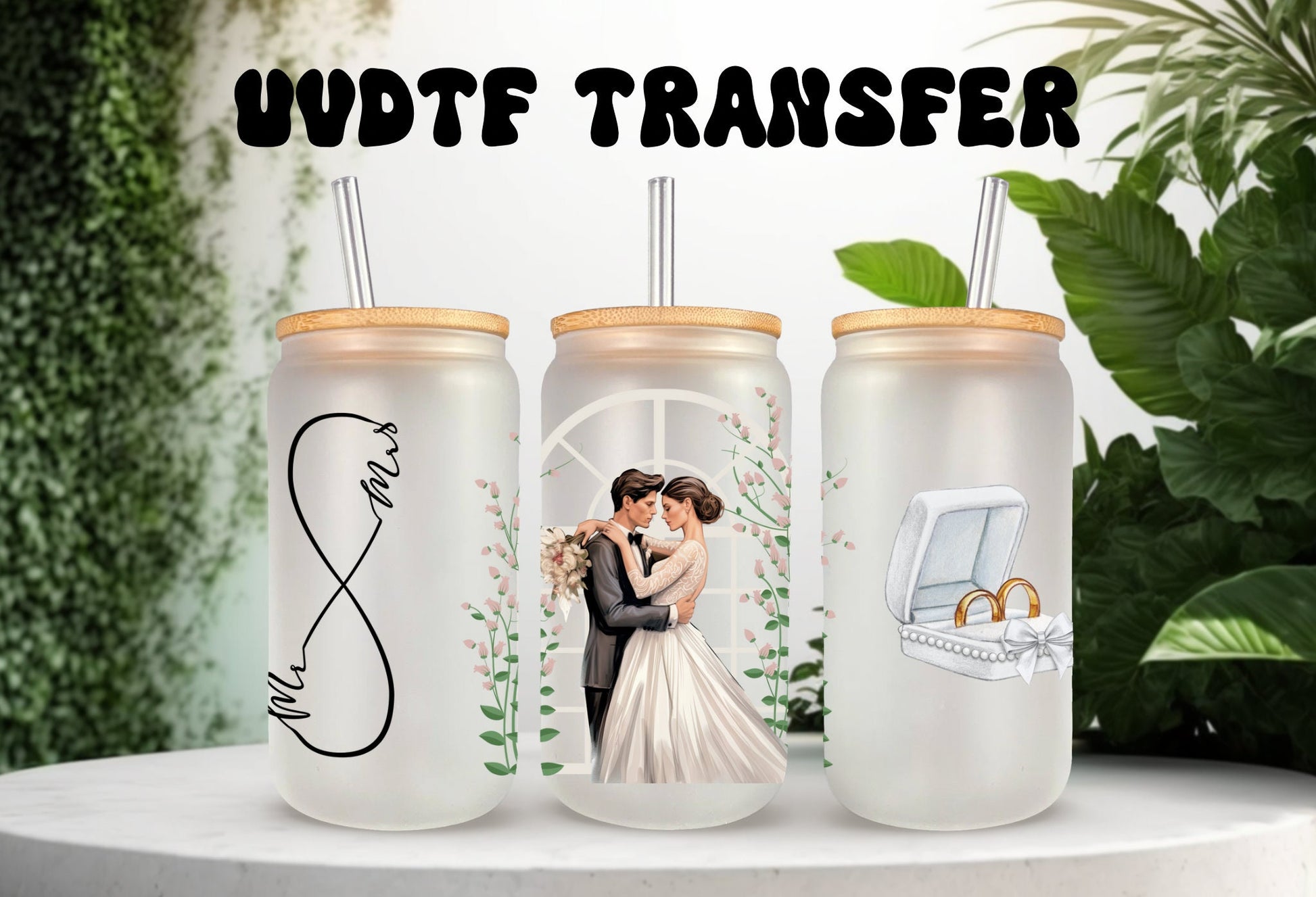 UVDTF Wrap Bride Mrs. & Mr. for 16oz Can Glass Mug Tumbler, Ready to Apply, Permanent Waterproof Adhesive