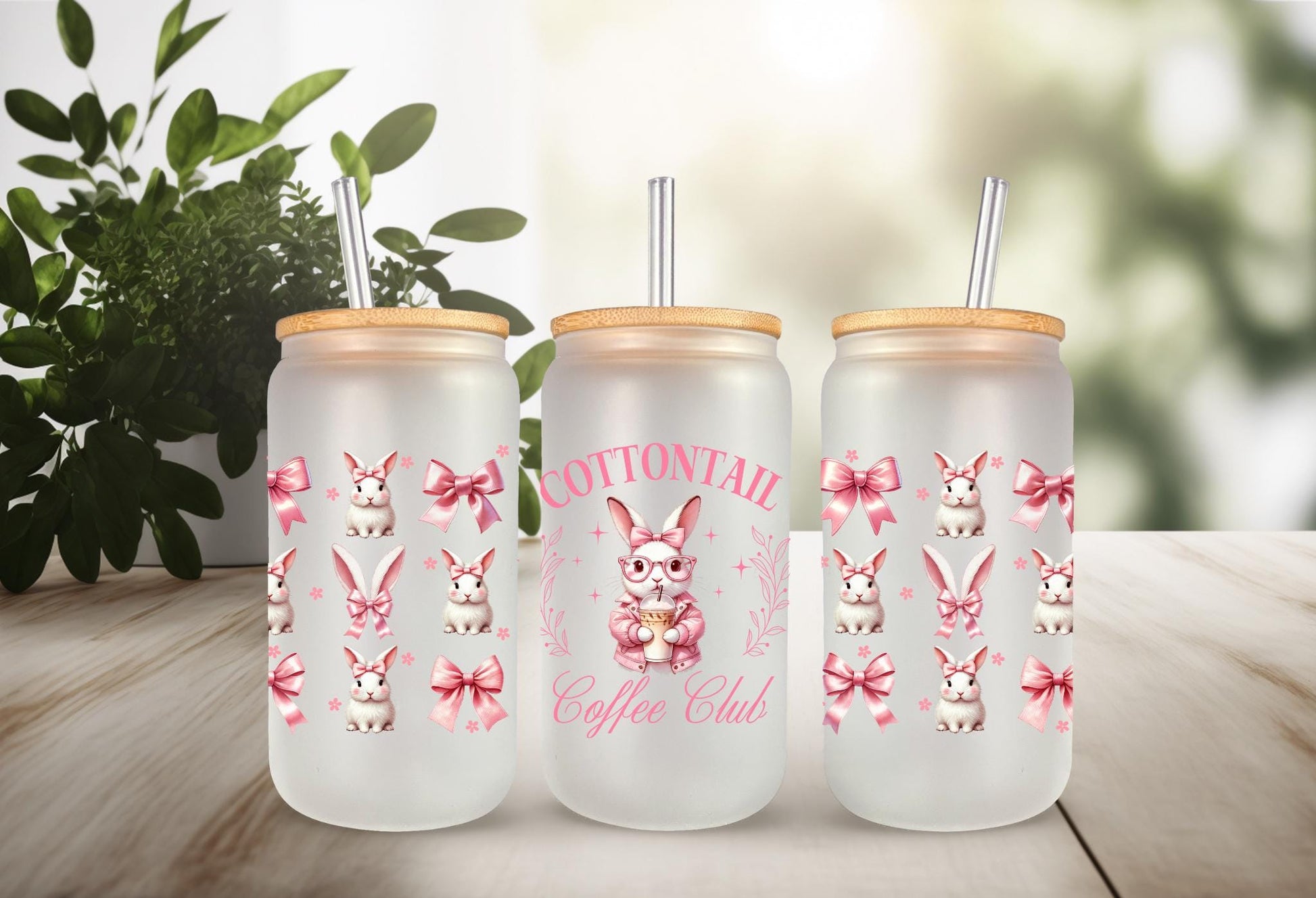 UVDTF Wrap Bunny Coquette Bows for 16oz Can Glass Mug Tumbler, Daisy Wrap, Ready to apply, Permanent Adhesive Waterproof