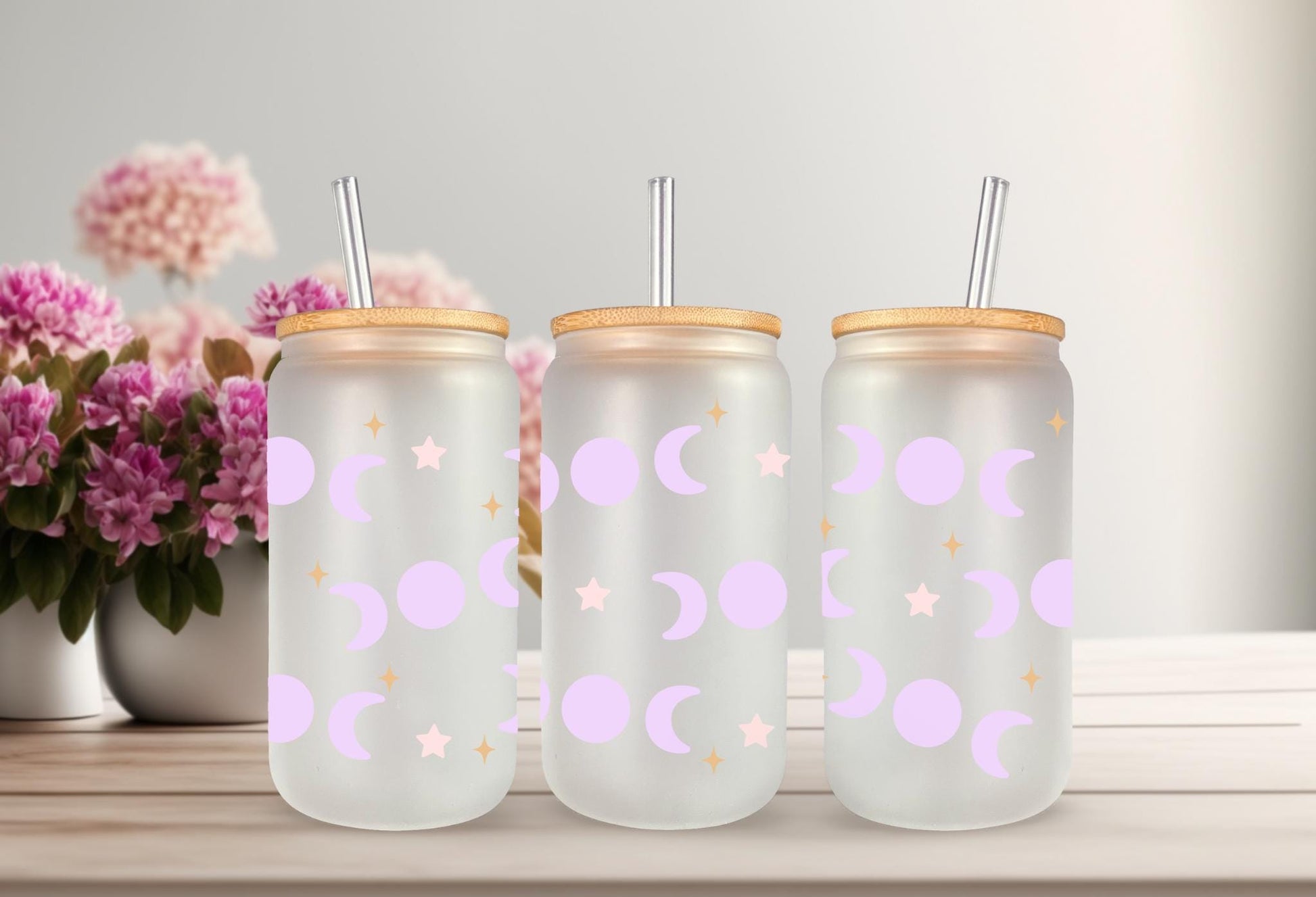 UVDTF Wrap Celestial Moon and Stars 16oz Can Glass Mug Tumbler, Moon Star Wrap, Ready to apply, Permanent Waterproof Adhesive