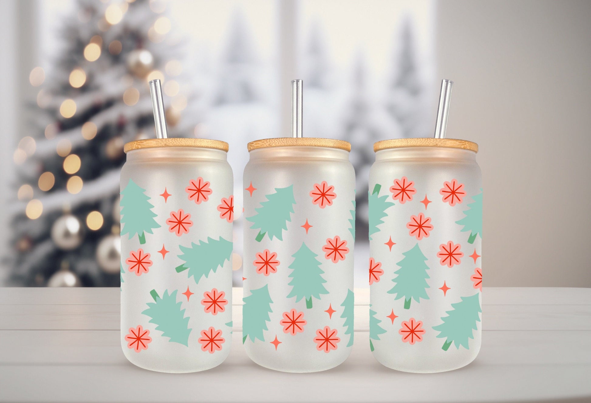 UVDTF Wrap Christmas Tree Snowflakes for 16oz Can Glass Mug Tumbler, Ready to apply, Waterproof Permanent Adhesive