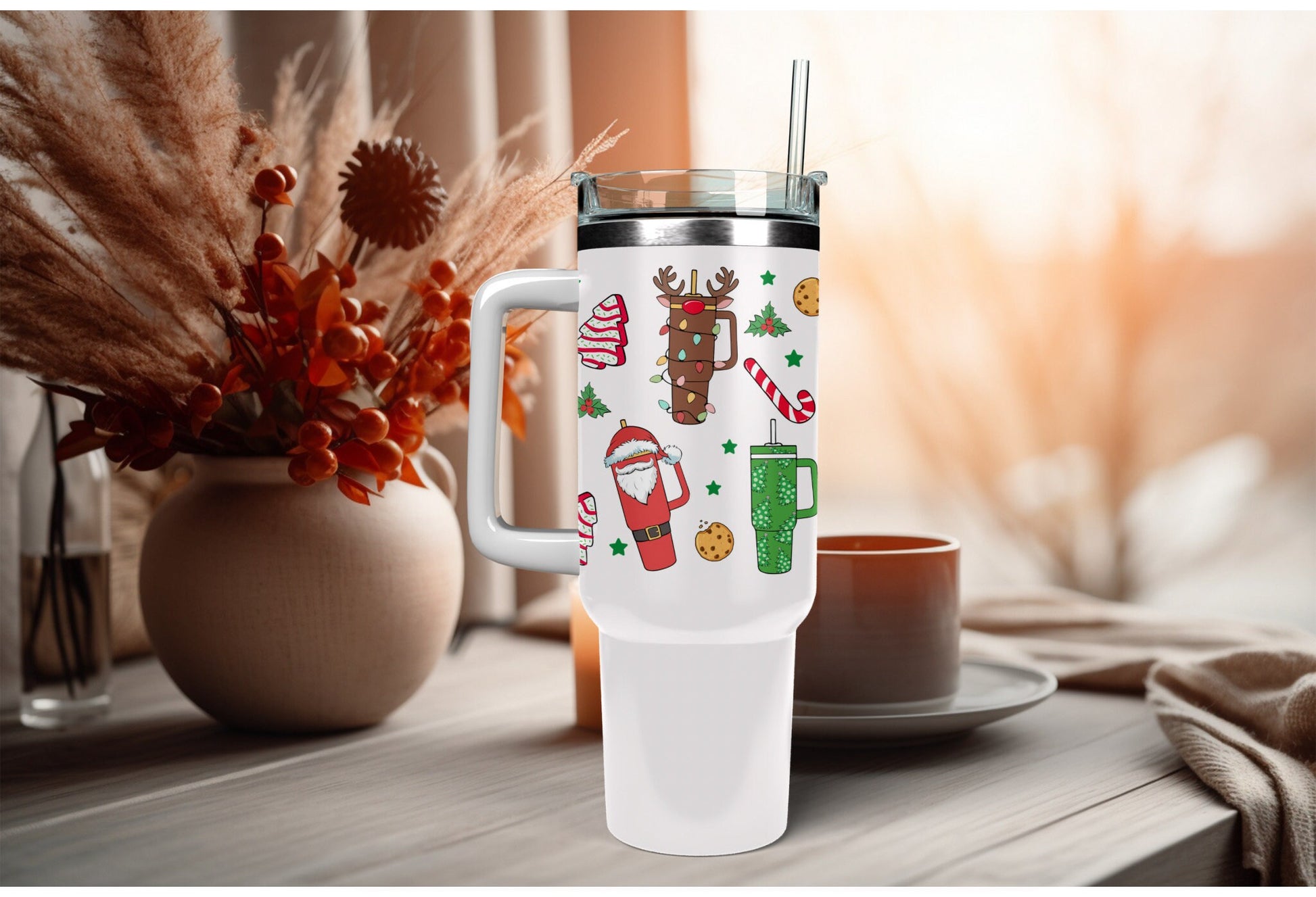 UVDTF Wrap Christmas Tumblers Santa Reindeer Tree Cakes for 16oz Can Glass Mug Tumbler, Ready to apply, Permanent Waterproof Adhesive
