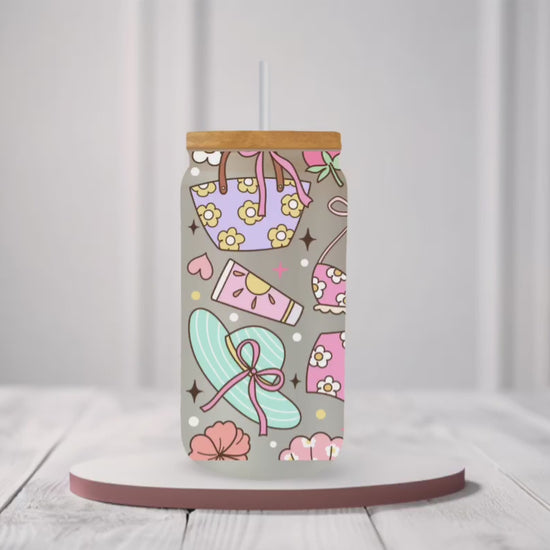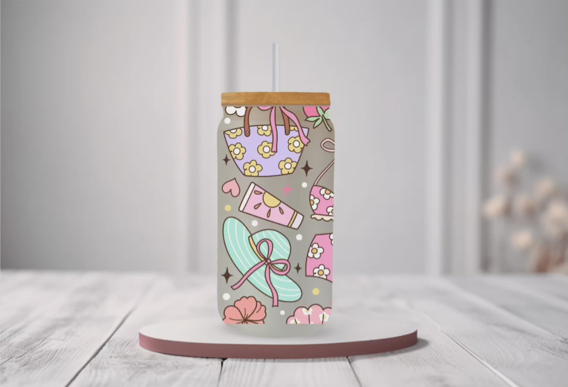 UVDTF Wrap Girly Floral Beach 16oz Can Glass Mug Tumbler, Ready to apply, Permanent Waterproof Adhesive, Add on a Cup (Copy)