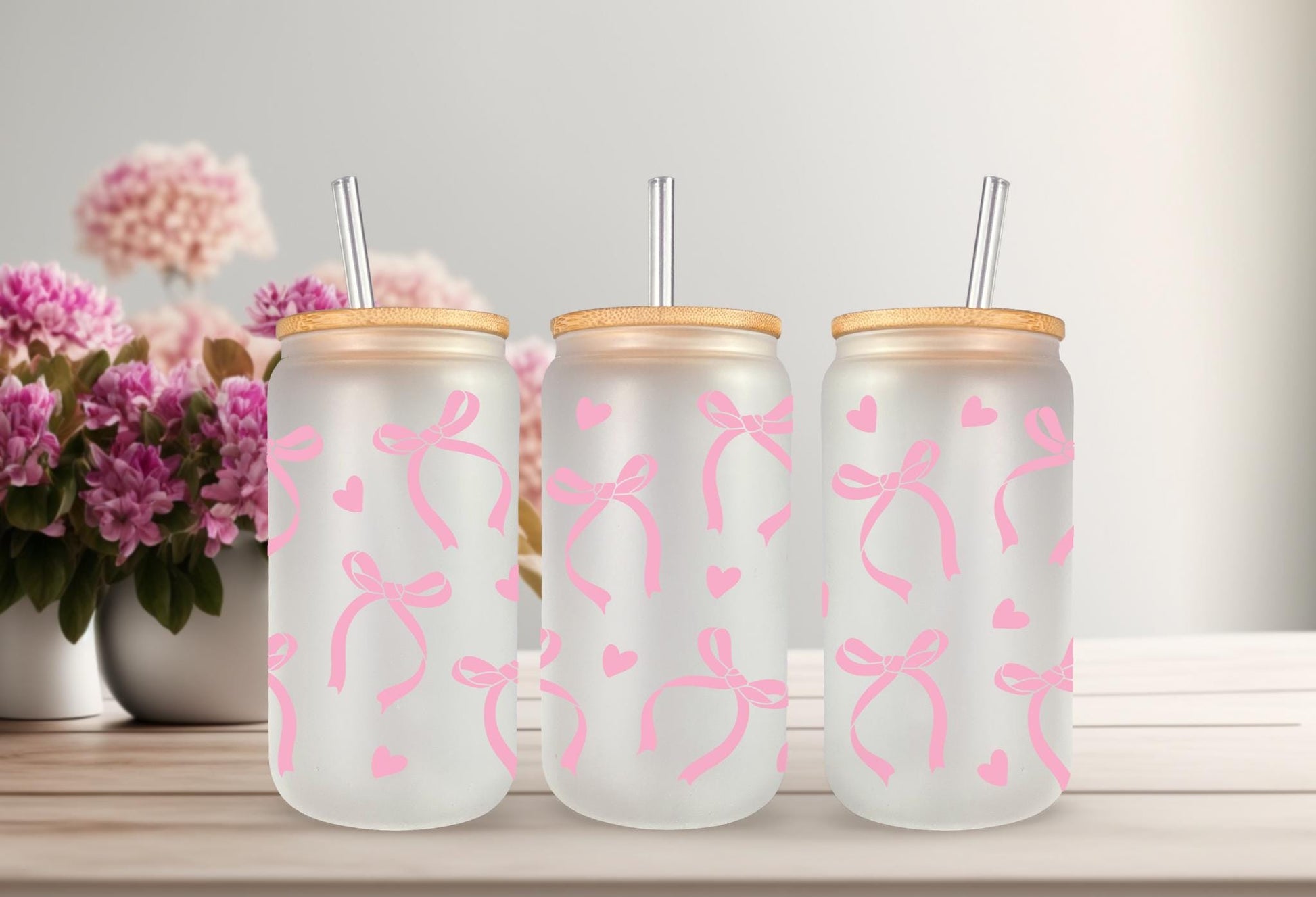 UVDTF Wrap Coquette Bows Hearts Pink 20oz Can Wrap Mug Tumbler, Bow Heart Wrap, Ready to Apply, Permanent Waterproof Adhesive