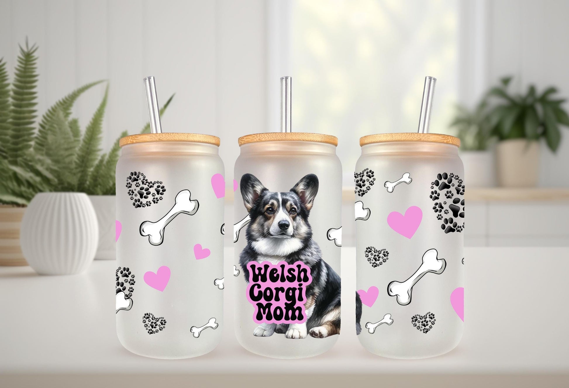 UVDTF Wrap Corgi Mom for 16oz Can Glass Mug Tumbler, Dog Mom Wrap, Ready to apply, Gifts for Her, Permanent Waterproof Adhesive
