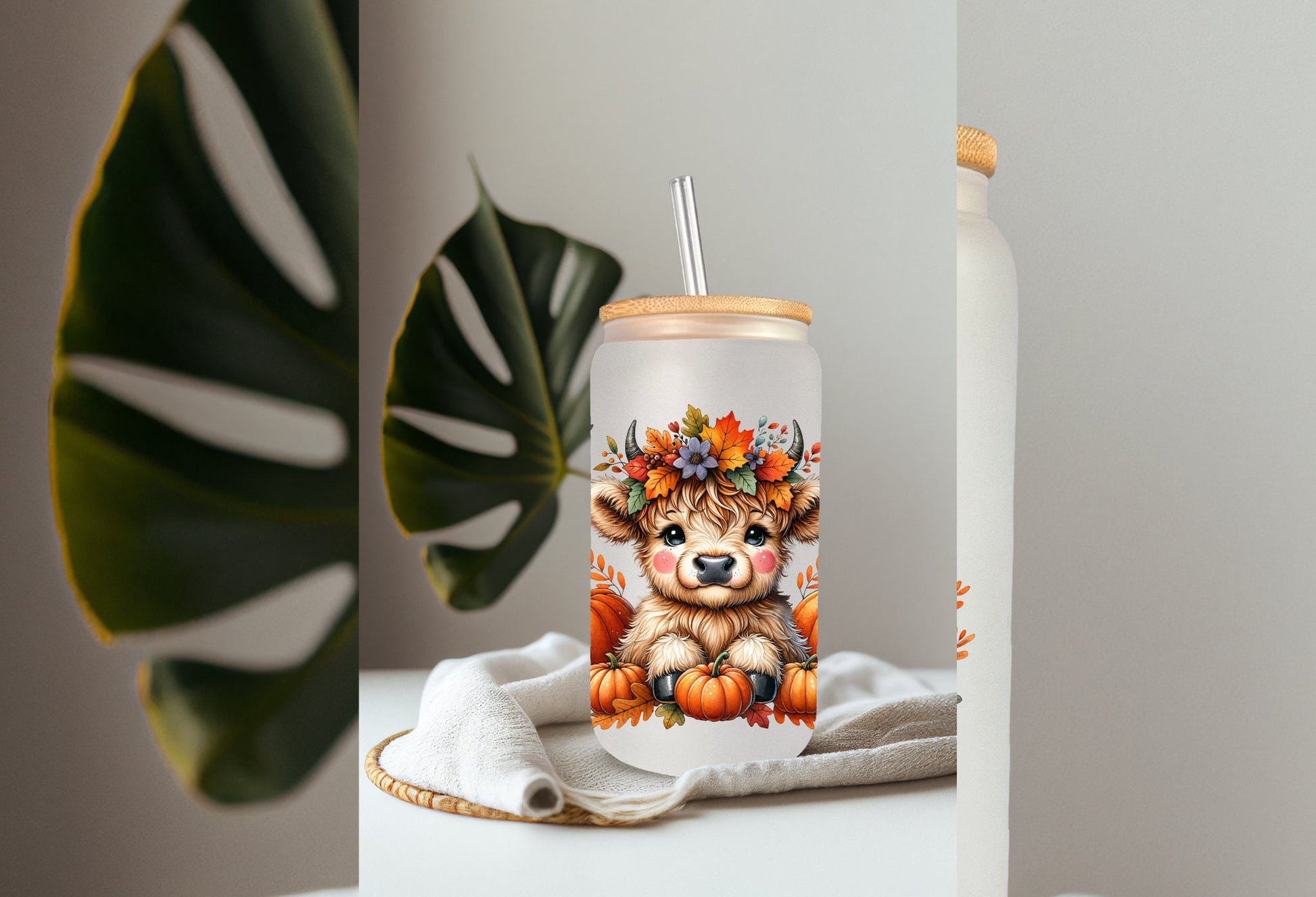 UVDTF Wrap Cute Cow Pumpkin Fall 16oz Can Glass Mug Tumbler, Ready to Apply, Permanent Waterproof Adhesive