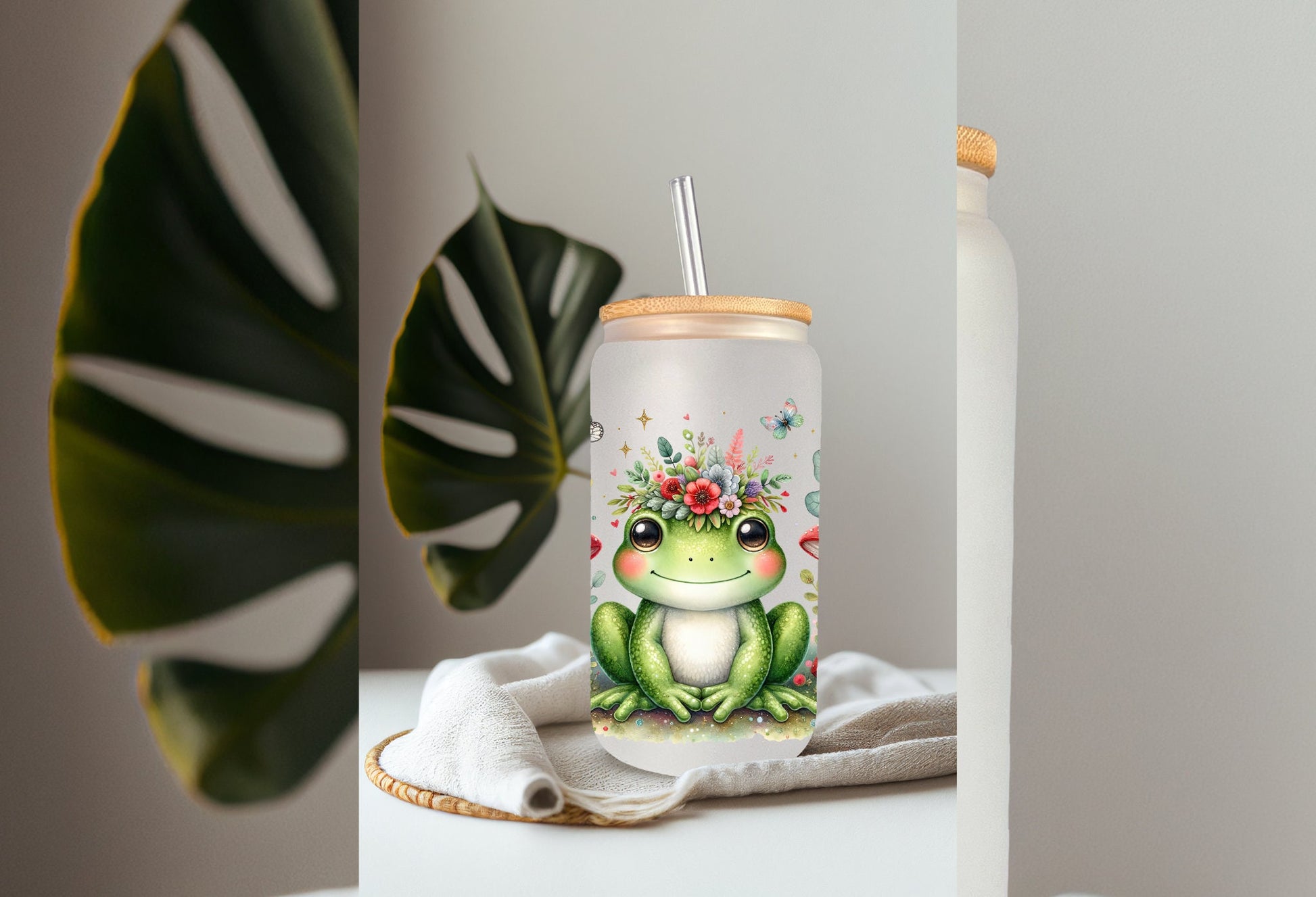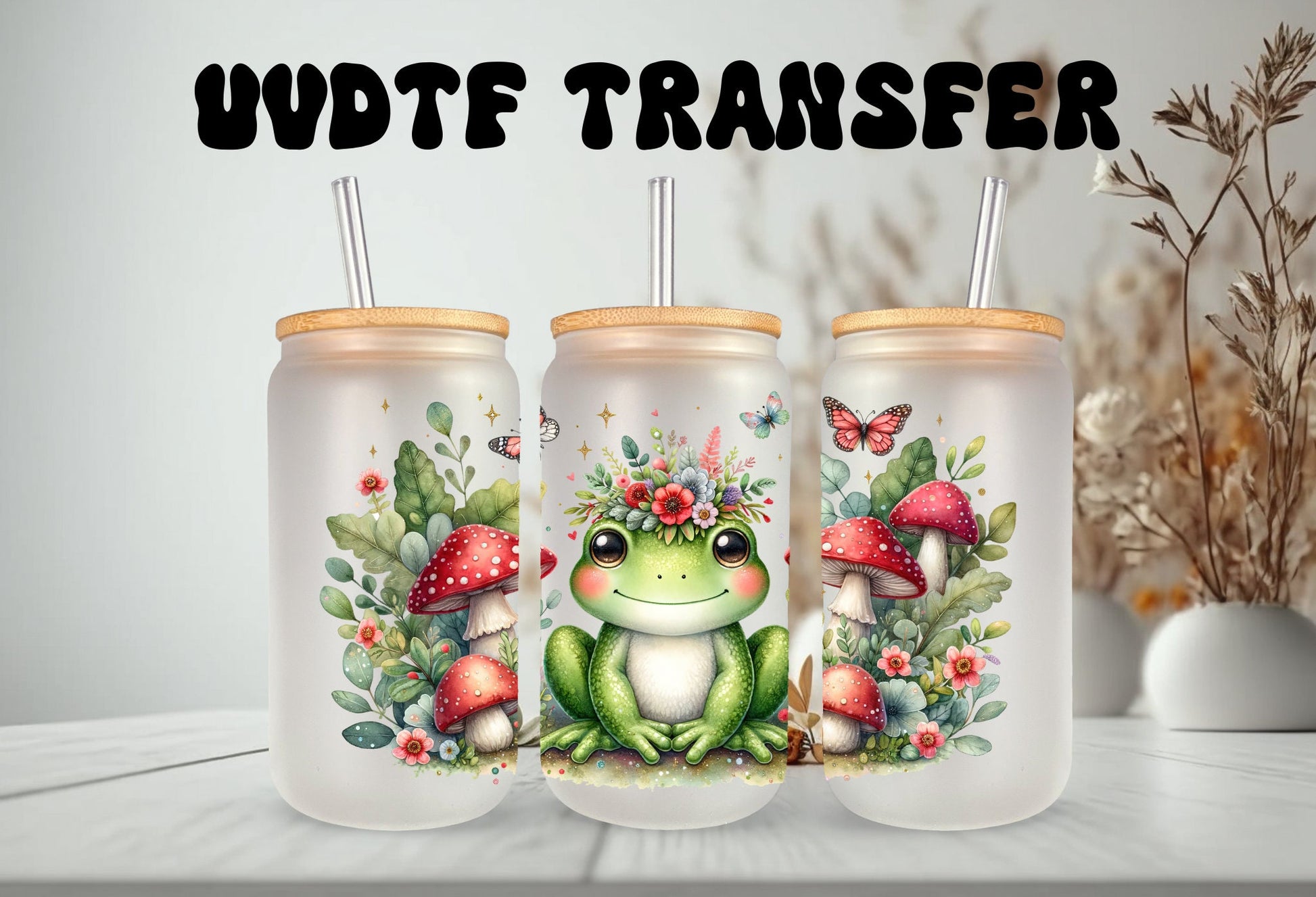 UVDTF Wrap Cute Frog Red Mushrooms 16oz Can Glass Mug Tumbler, Frog Wrap, Ready to apply, Permanent Waterproof Adhesive